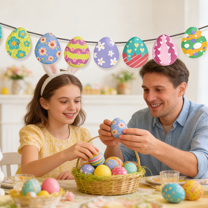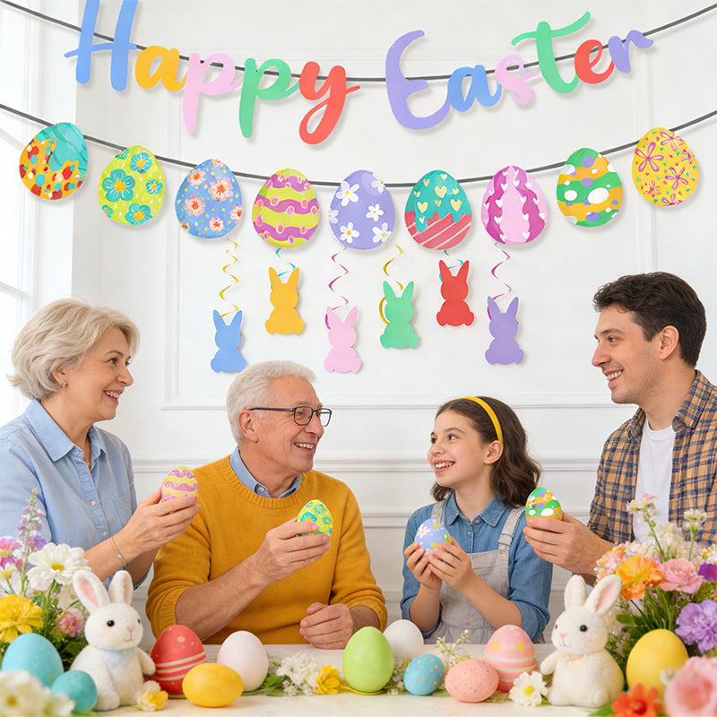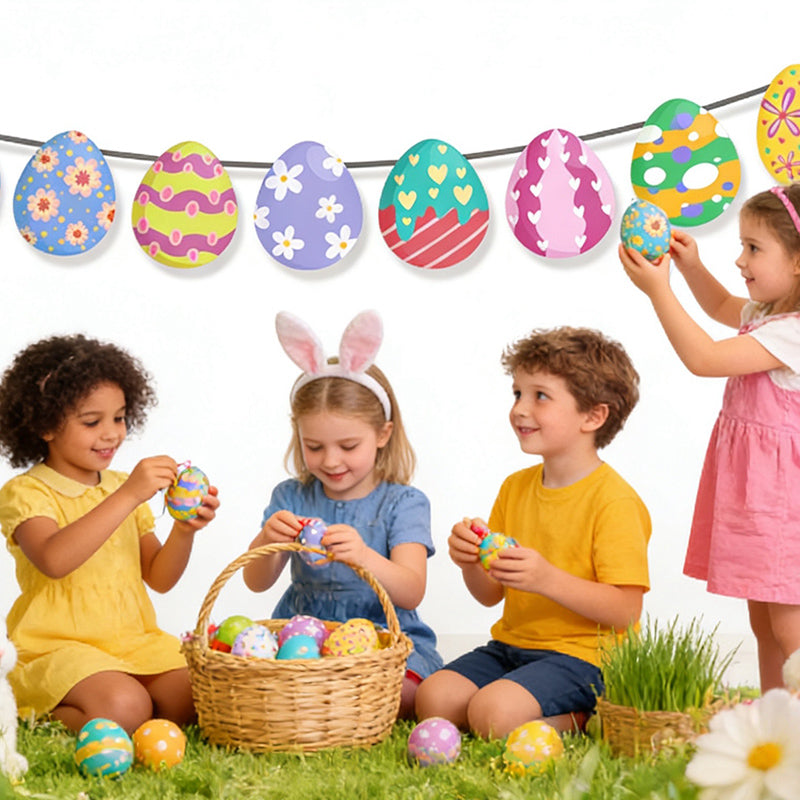 Celebrate Easter in style with this colorful Easter Egg & Bunny Banner. Featuring cheerful “Happy Easter” lettering, playful bunny and egg designs, this paper banner instantly adds festive flair to parties, classrooms, or home décor.