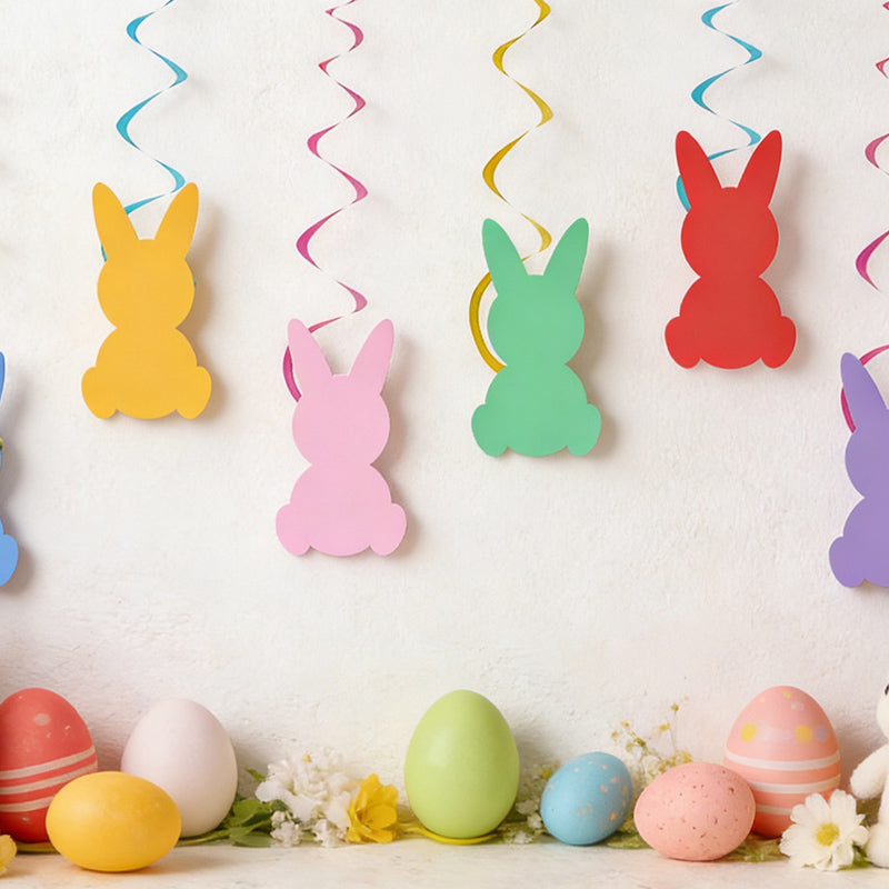 Includes eggs, bunnies, and festive typography for a complete Easter look