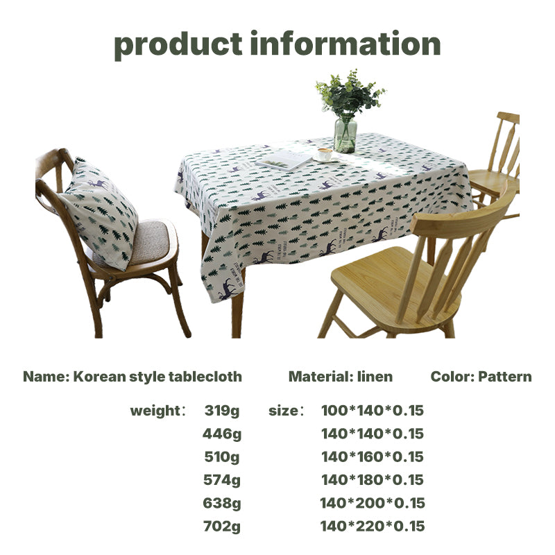Add a touch of modern Korean simplicity to your dining or coffee table. This linen-blend tablecloth features a delicate green tree pattern, offering a fresh, natural look that’s both stylish and practical for daily use.