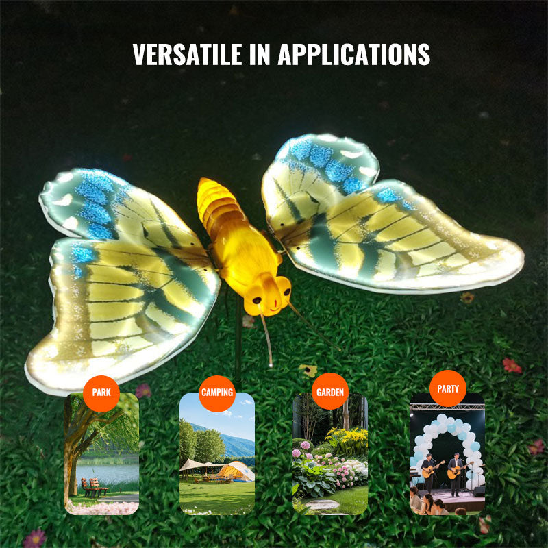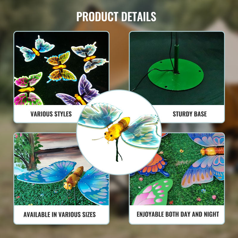 Create magical outdoor spaces with our LED Butterfly Decor Lights. These dynamic simulation butterflies feature sturdy bases, vibrant multicolor lighting, and versatile sizing - perfect for parks, camping, gardens, and parties both day and night.