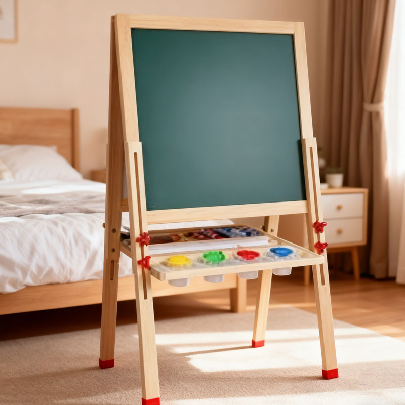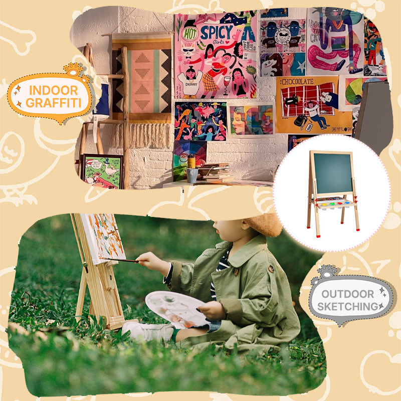 Unleash your child's creativity with our Magnetic Painting Stand, featuring a versatile dual-sided design perfect for both indoor and outdoor artistic adventures. This sturdy wooden easel offers a magnetic whiteboard and classic green chalkboard surface, allowing young artists to explore different mediums. The adjustable stand and premium construction make it ideal for drawing, writing, and educational activities.