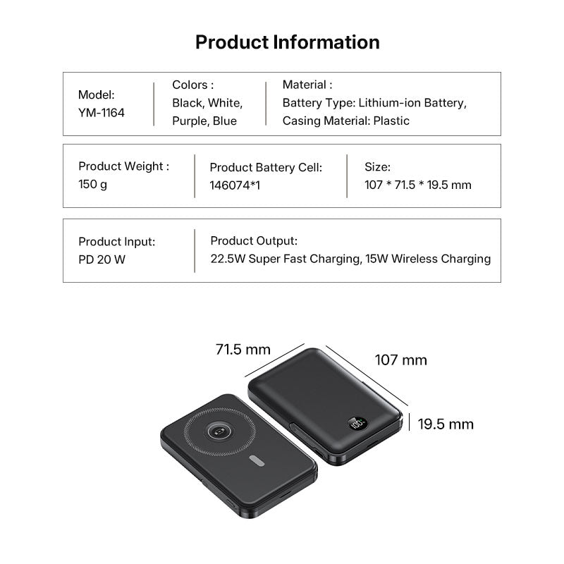 • Output: 22.5W Wired / 15W Wireless