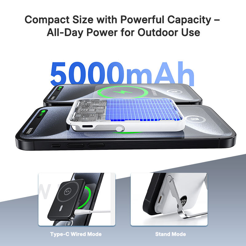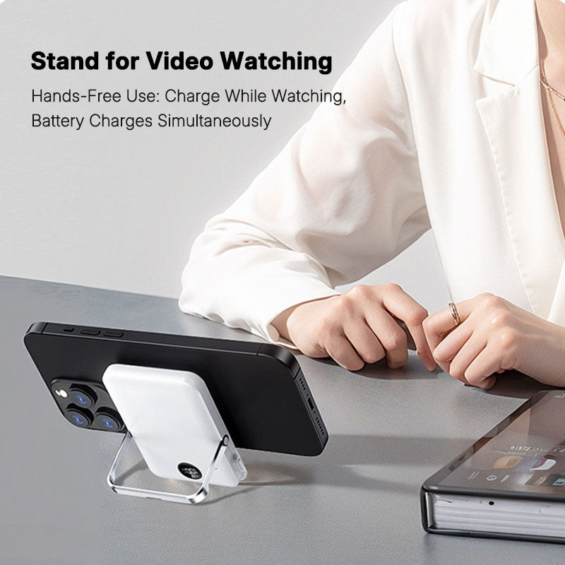Experience the perfect blend of power and convenience with our Portable Power Bank featuring a built-in stand. This compact 5000mAh charger delivers 20W fast charging with advanced graphene heat dissipation technology. The integrated stand allows for hands-free video watching while charging, making it your ideal outdoor and travel companion.