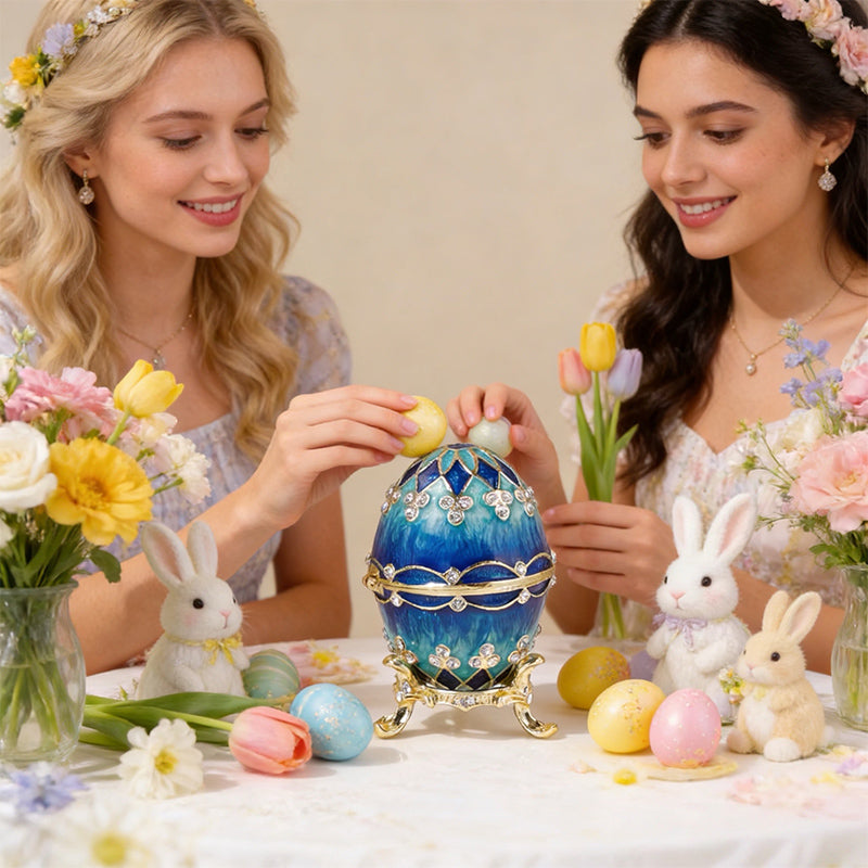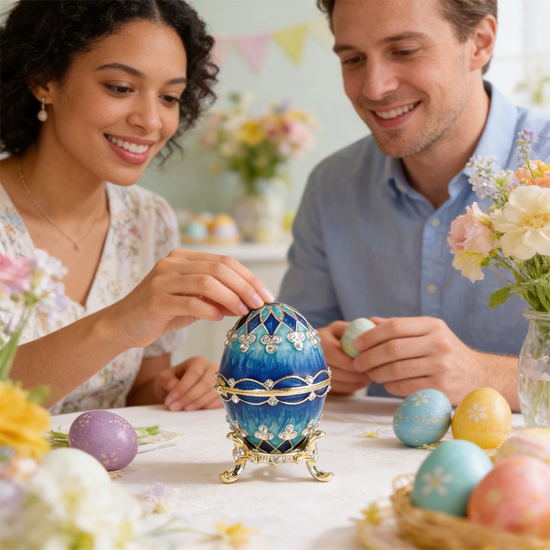 Classic egg shape with intricate detailing and vibrant color options