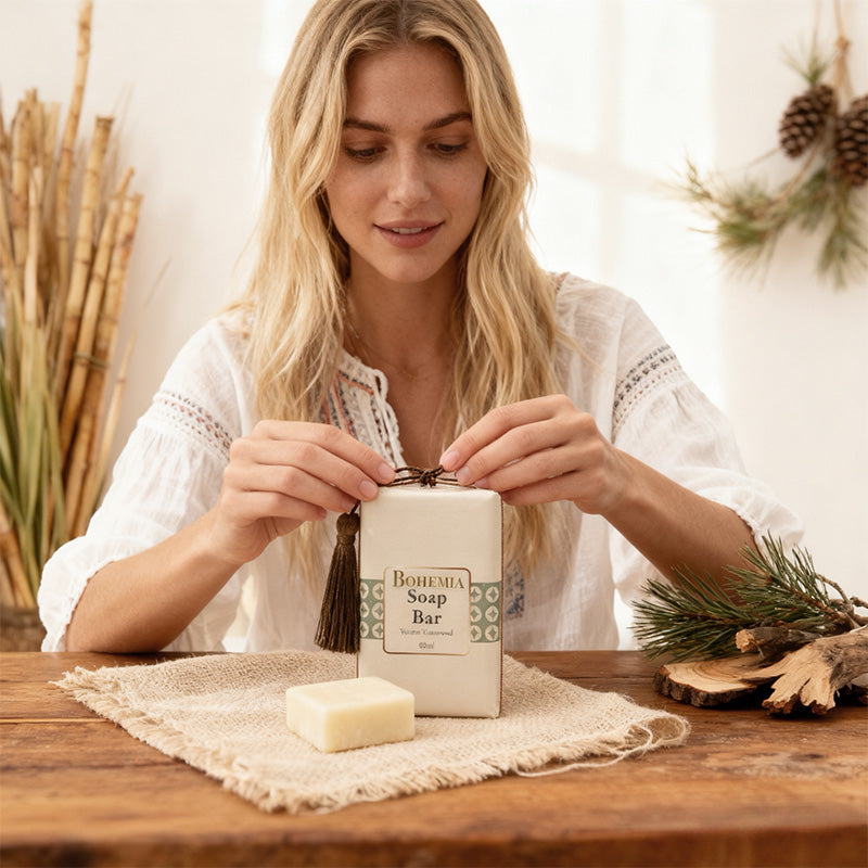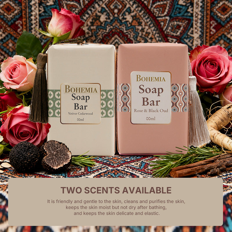 Discover the Bohemia Natural Skin Care Soap – a gentle yet effective cleansing bar that combines skin-friendly ingredients with luxurious fragrances. Available in two captivating scents, this soap cleanses, purifies, and maintains your skin's natural moisture balance, leaving it soft, supple, and delicately scented.