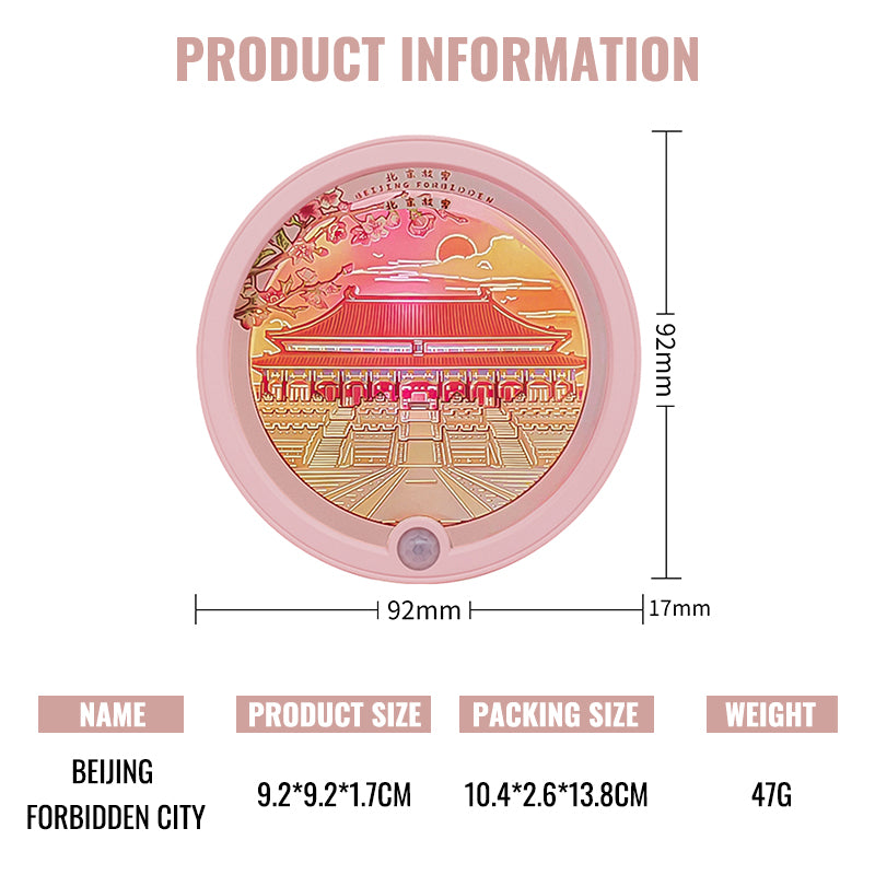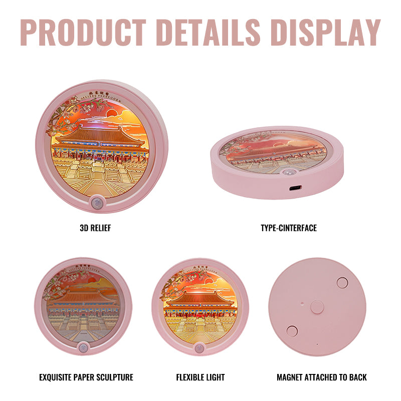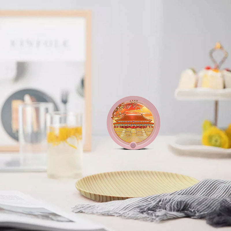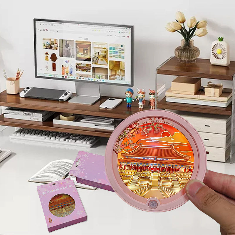 This exquisite 3D paper sculpture fridge magnet features Beijing's iconic Forbidden City. With smart sensor lighting, gradient color effects, and magnetic backing, it combines cultural artistry with modern functionality for elegant refrigerator decoration.