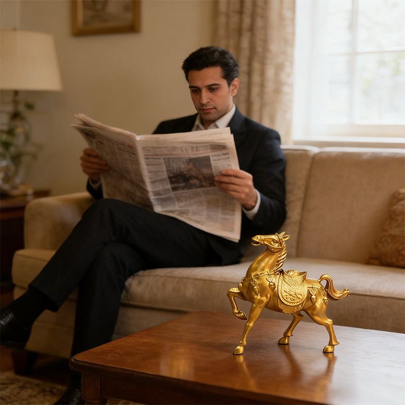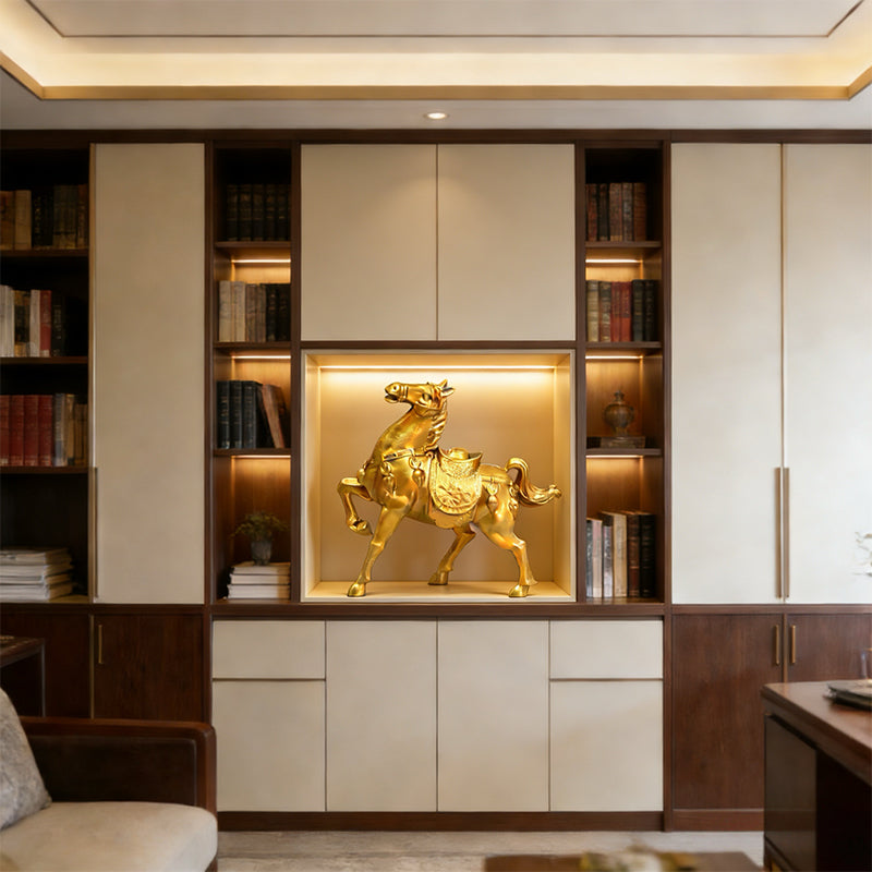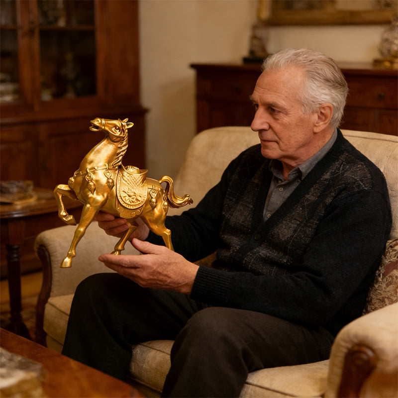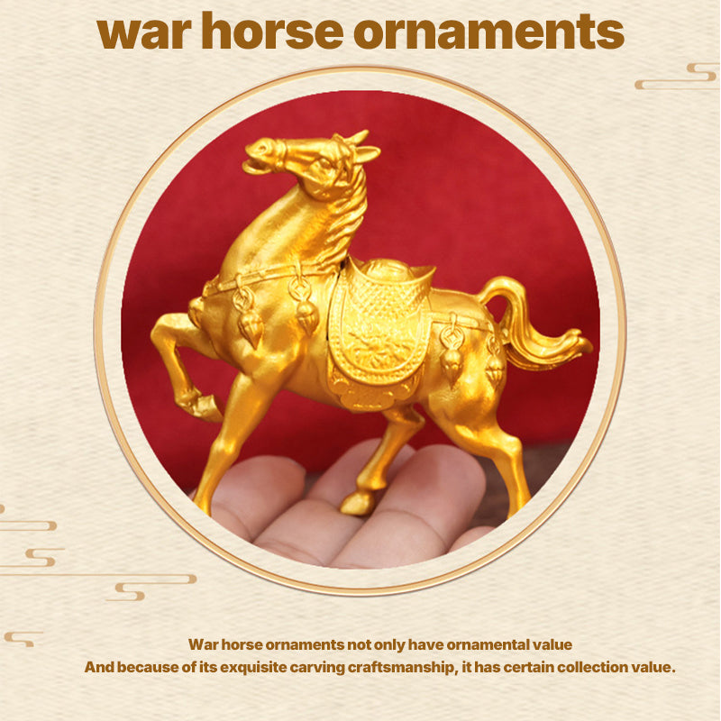 Add a touch of strength and success to your space with this exquisite Golden War Horse Statue. Crafted from detailed alloy and finished in radiant gold, this compact ornament symbolizes victory and prosperity—perfect for office desks, shelves, or as a meaningful gift.
