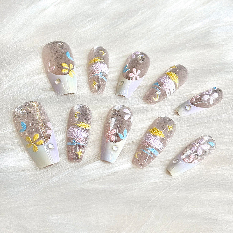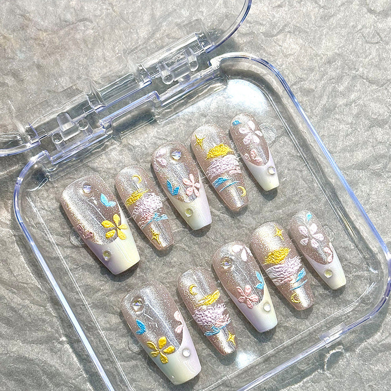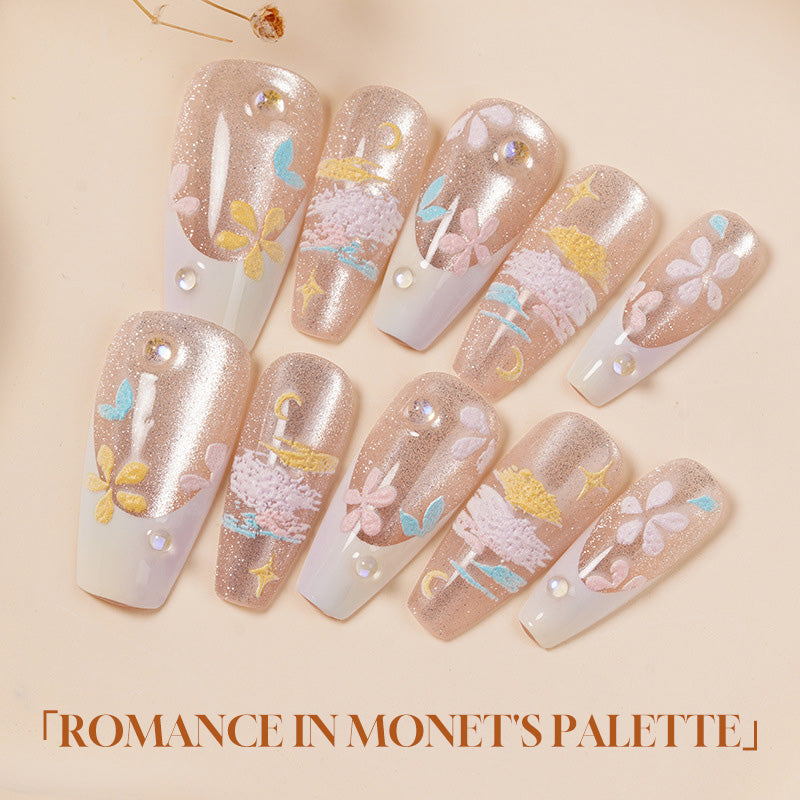 Capture the romantic essence of Monet's palette with these exquisite watercolor-style press-on nails. Featuring ethereal translucent designs and delicate artistic patterns, these reusable nails bring gallery-worthy elegance to your fingertips in just 10 minutes.