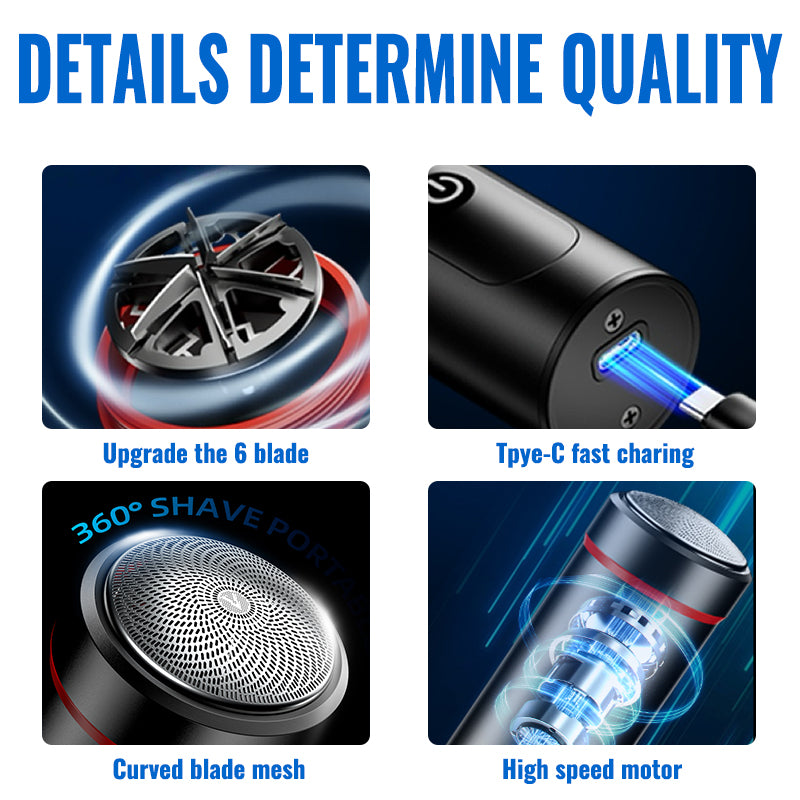 Meet your ultimate grooming companion - this compact mini shaver delivers precision performance anywhere. With 6-blade 360° curved shaving system and Type-C fast charging, it's perfect for quick dry shaves or comfortable wet shaving with foam. Ultra-lightweight at just 85g, it's your ideal travel essential.