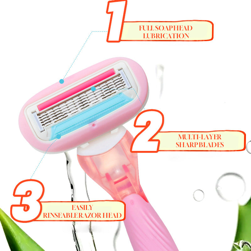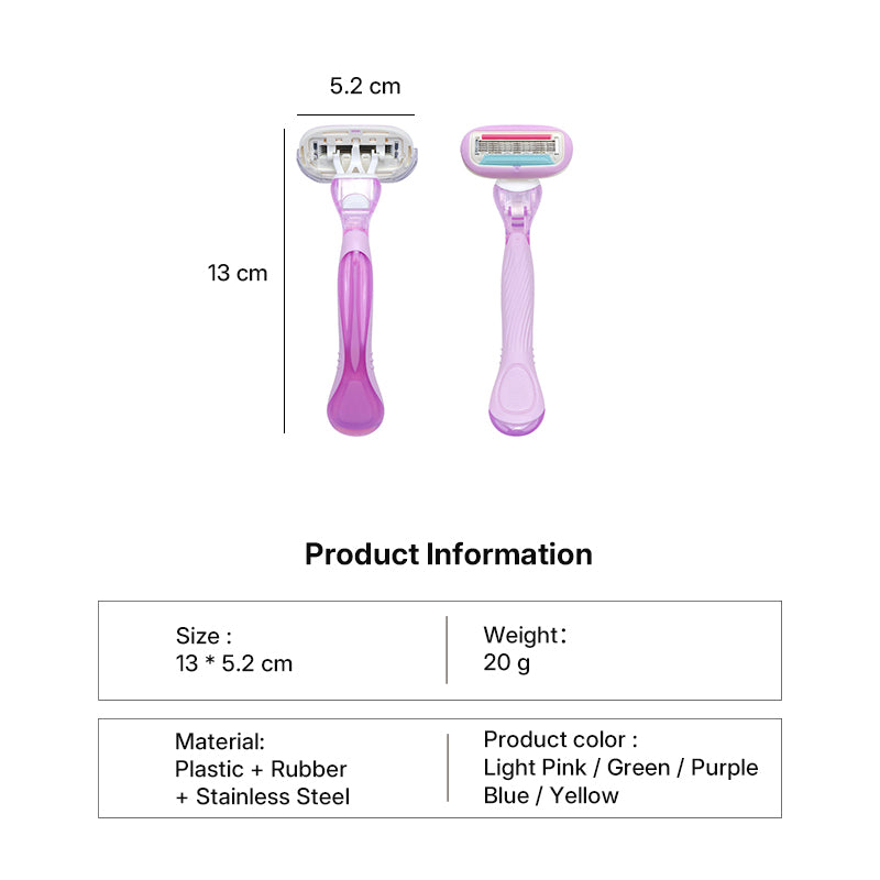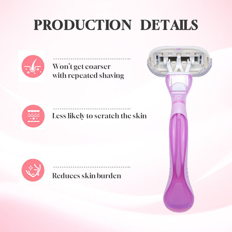 Experience gentle and effective hair removal with our Women's 3/5-Blade Razor, designed specifically for sensitive skin. Featuring full soap head lubrication and multi-layer sharp blades, this razor provides a smooth shaving experience while minimizing skin irritation. Perfect for face, underarms, bikini line, and body use, it's your ideal companion for daily personal care.
