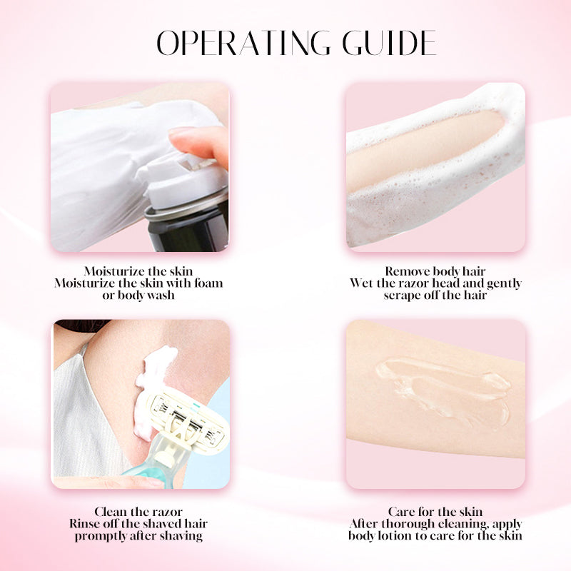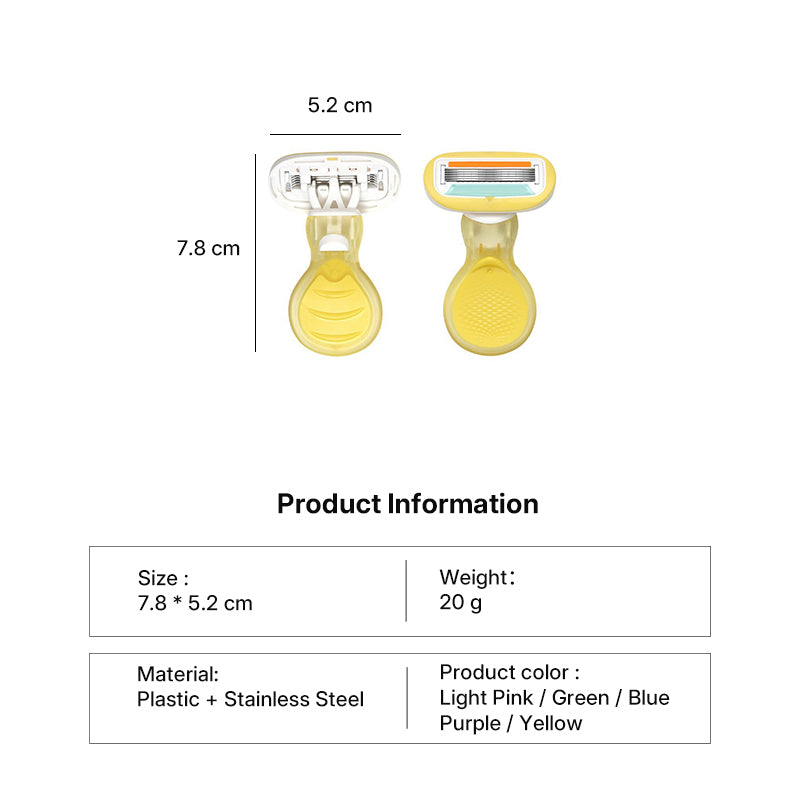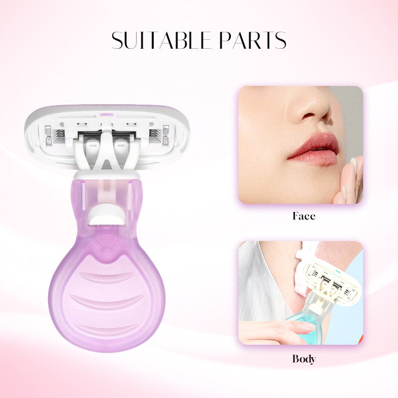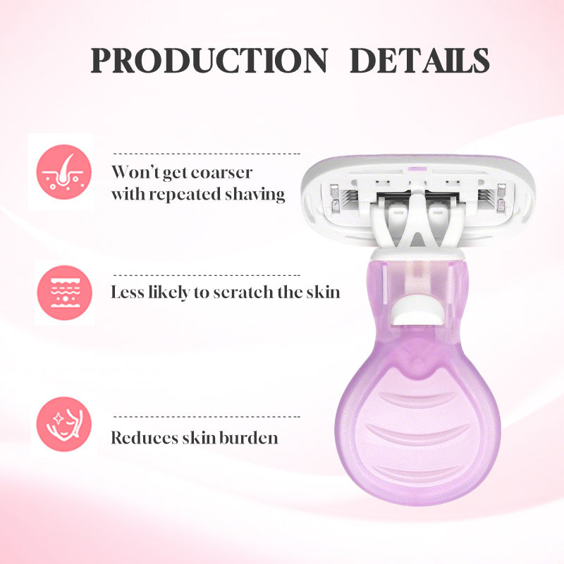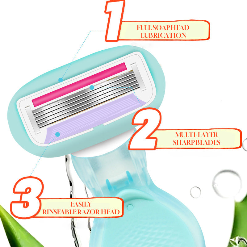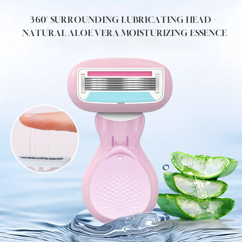 Experience the ultimate in gentle hair removal with our Women's 5-Blade Razor, featuring a unique 360° surrounding lubricating head infused with natural aloe vera essence. Designed specifically for sensitive areas like underarms and bikini line, this razor provides an exceptionally smooth shave while moisturizing and protecting your skin. The compact shell design makes it perfect for travel and daily use.