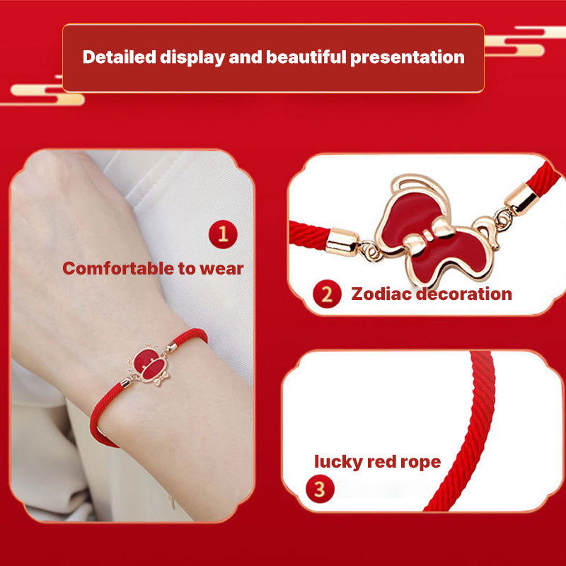 Embrace luck and personal style with our Zodiac Red Rope Bracelet. Featuring your chosen zodiac animal charm on a classic red cord, this bracelet combines symbolic meaning with everyday wearability for a touch of personalized fortune.