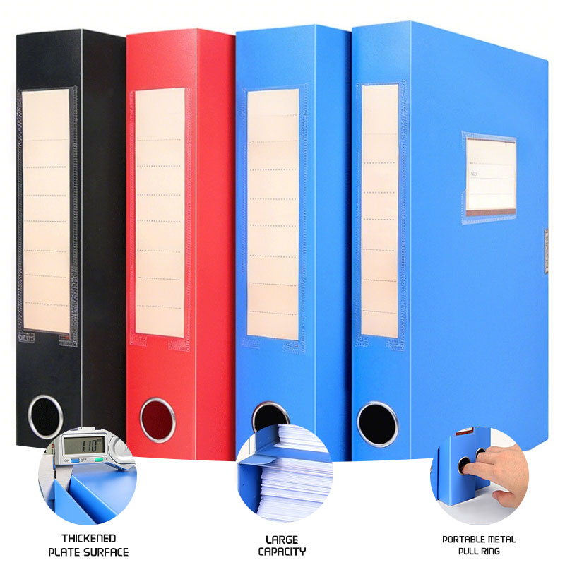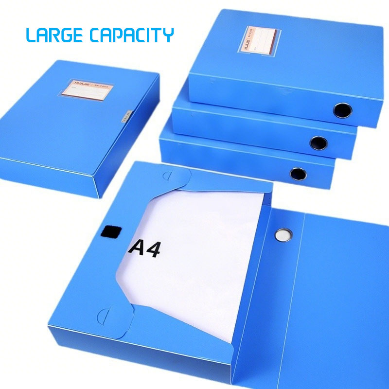 Streamline your document management with our A4 Folding File Box, designed for efficient organization in offices and schools. This collapsible storage solution features a sturdy plastic construction with convenient Velcro closure for secure document protection. The portable metal pull ring and space-saving foldable design make it perfect for archiving important files while maximizing storage space.