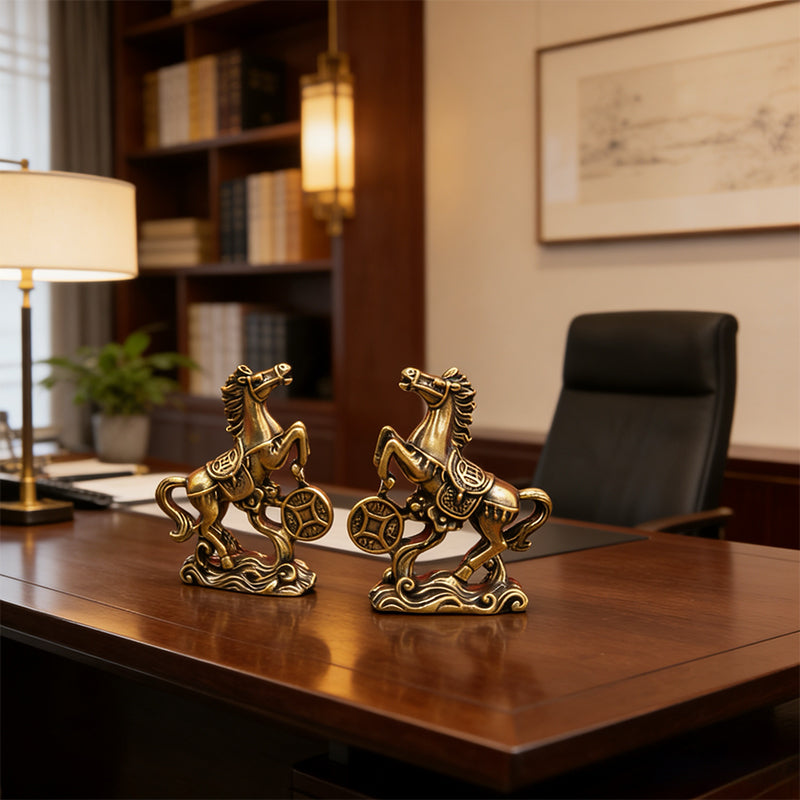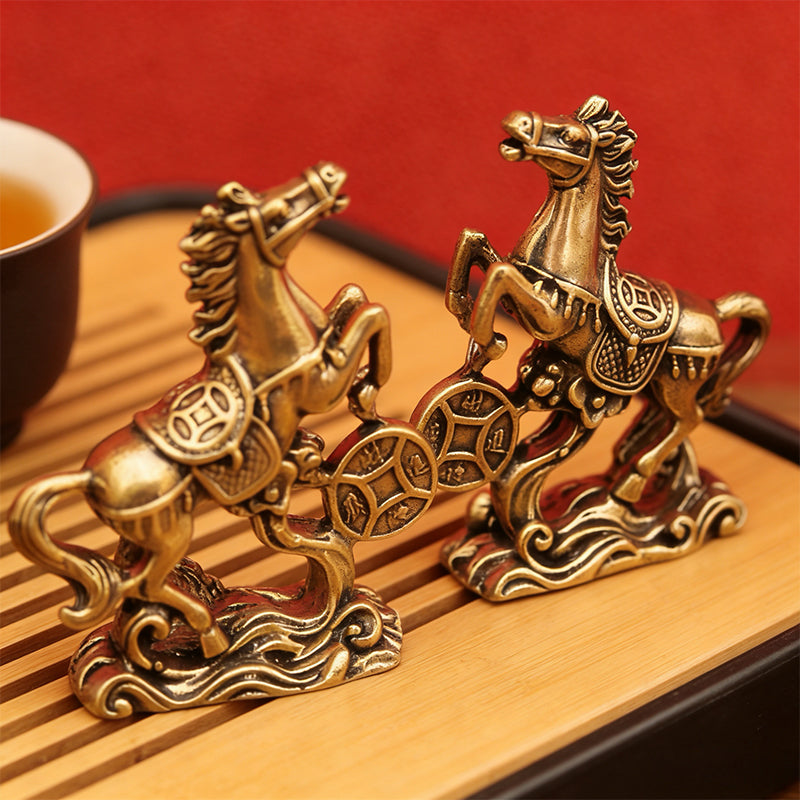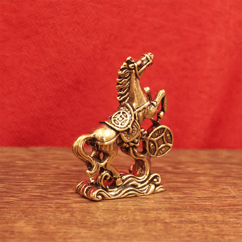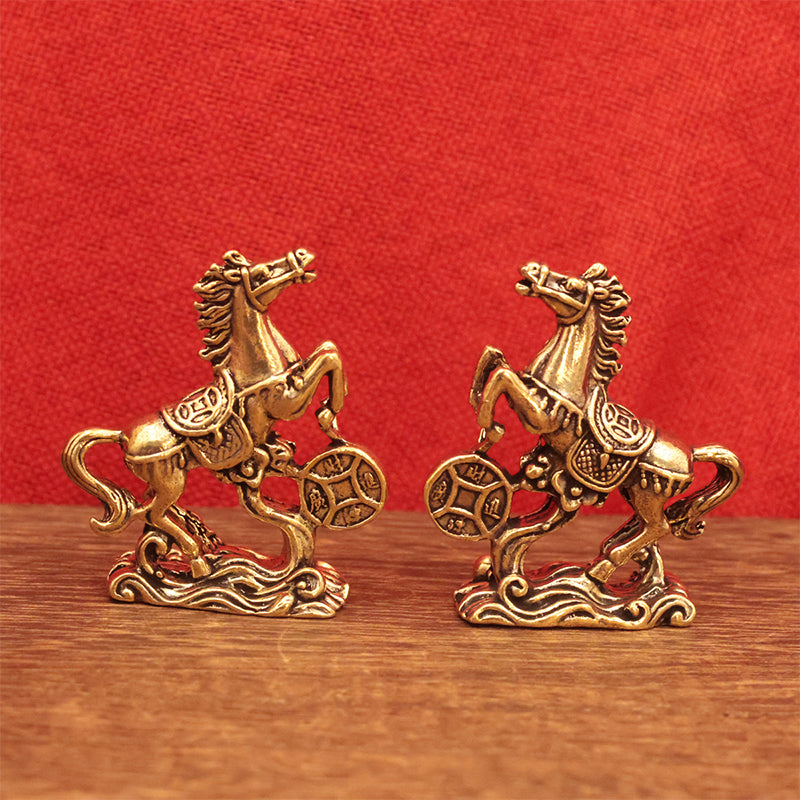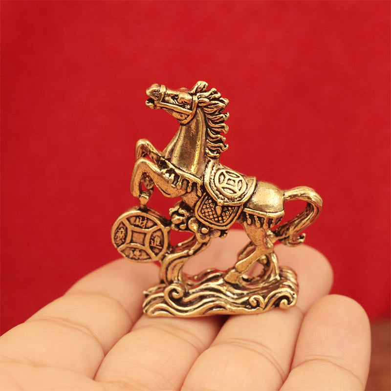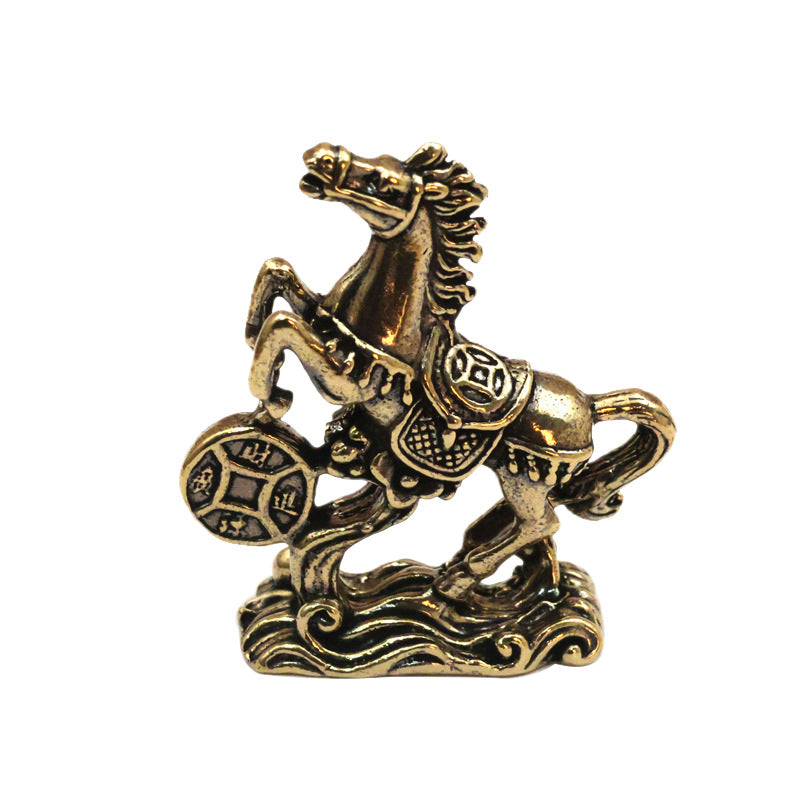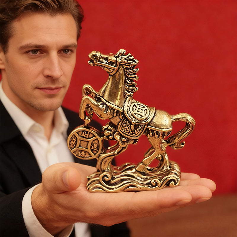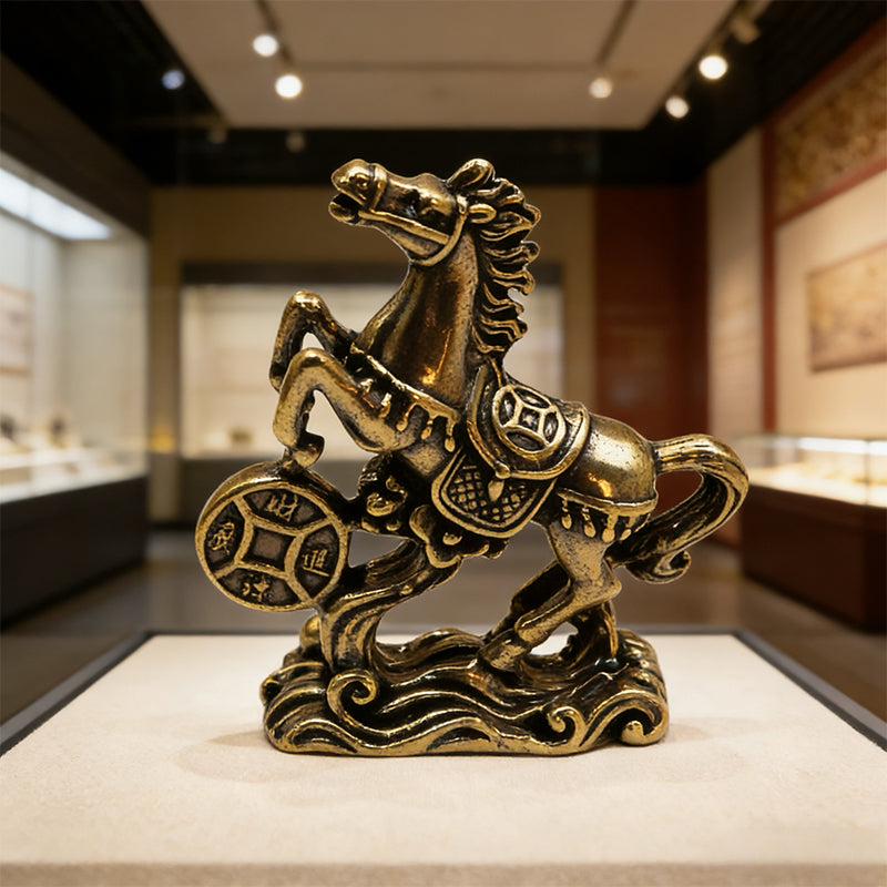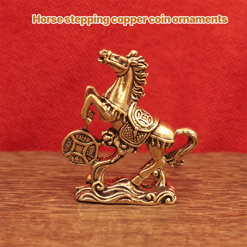 Attract wealth and good fortune with this finely crafted Brass Horse Coin Statue. Featuring a horse stepping on ancient coins—a symbol of prosperity and success—this compact, retro-style ornament is perfect for home desks, office shelves, or as a meaningful gift for the Year of the Horse.