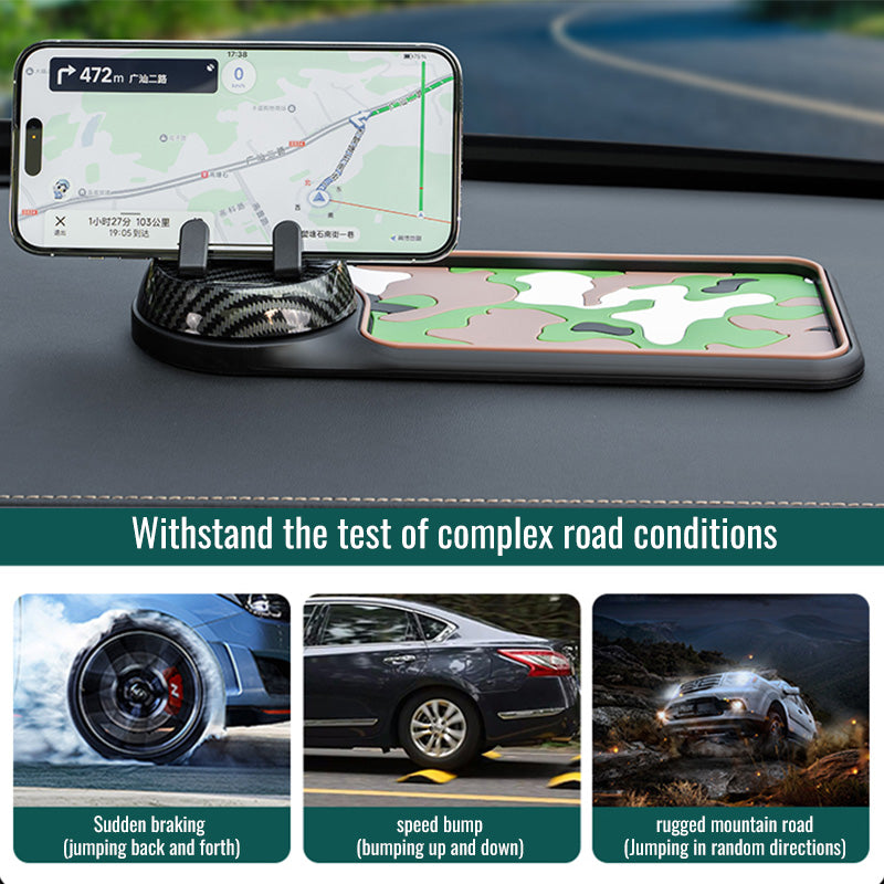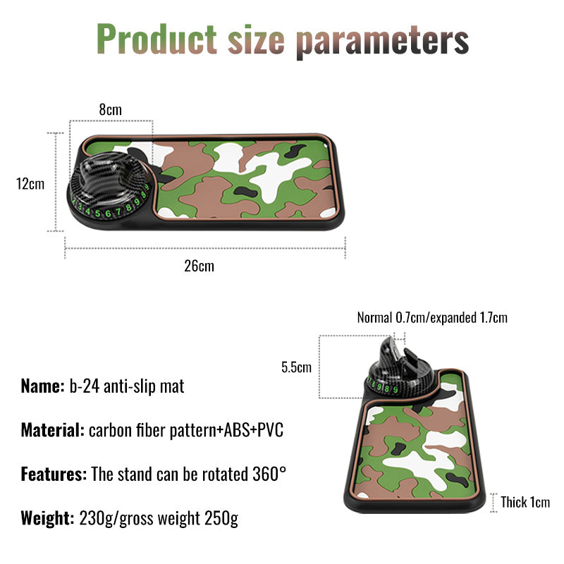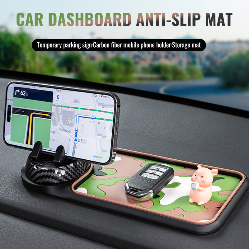 Upgrade your car's functionality with the Carbon Fiber Car Phone Holder Mat. Combining a 360° rotating phone stand, built-in parking number display, and anti-slip storage surface, this multi-purpose mat keeps your essentials secure even on bumpy roads.