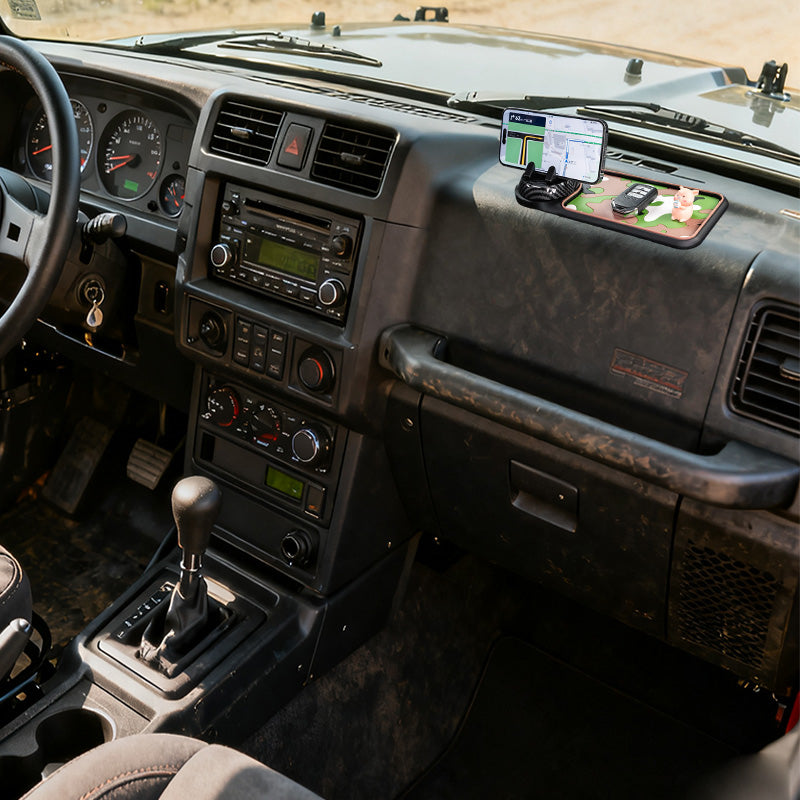 Features: Phone holder, parking sign, anti-slip mat