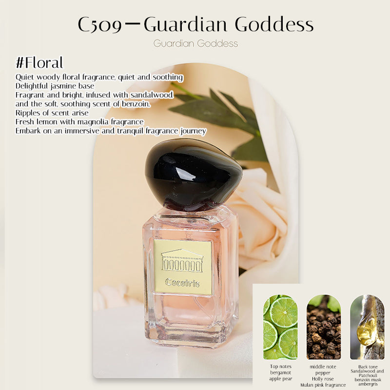 C509 – Guardian Goddess: A serene floral-woody blend of jasmine and sandalwood for calm and elegance.