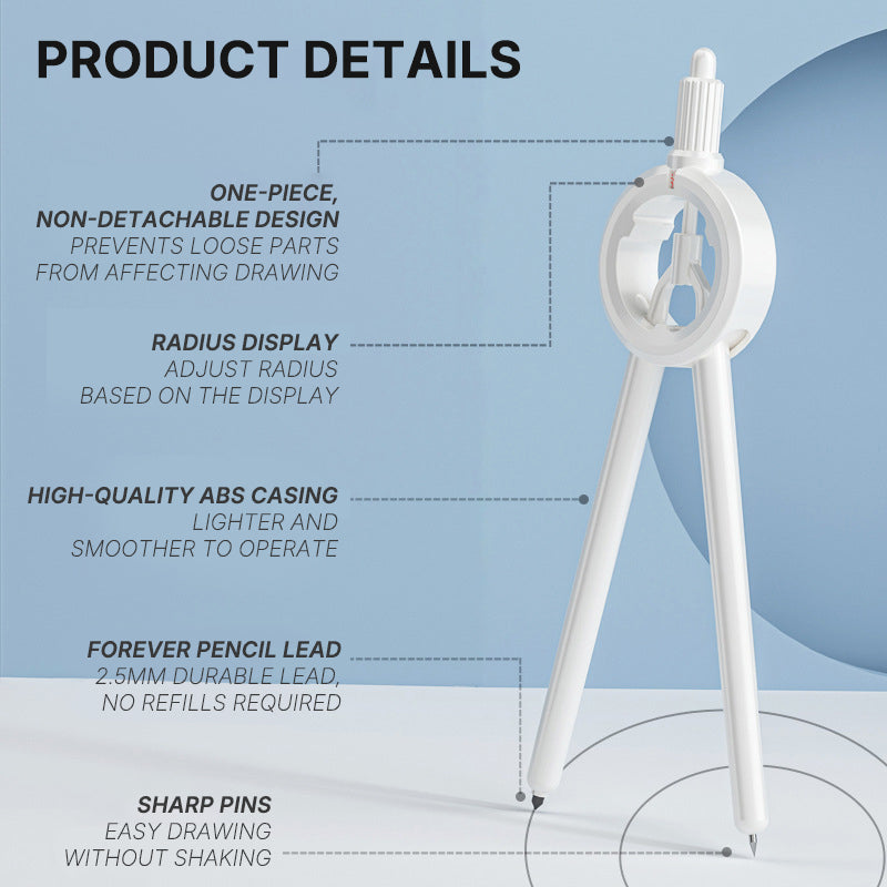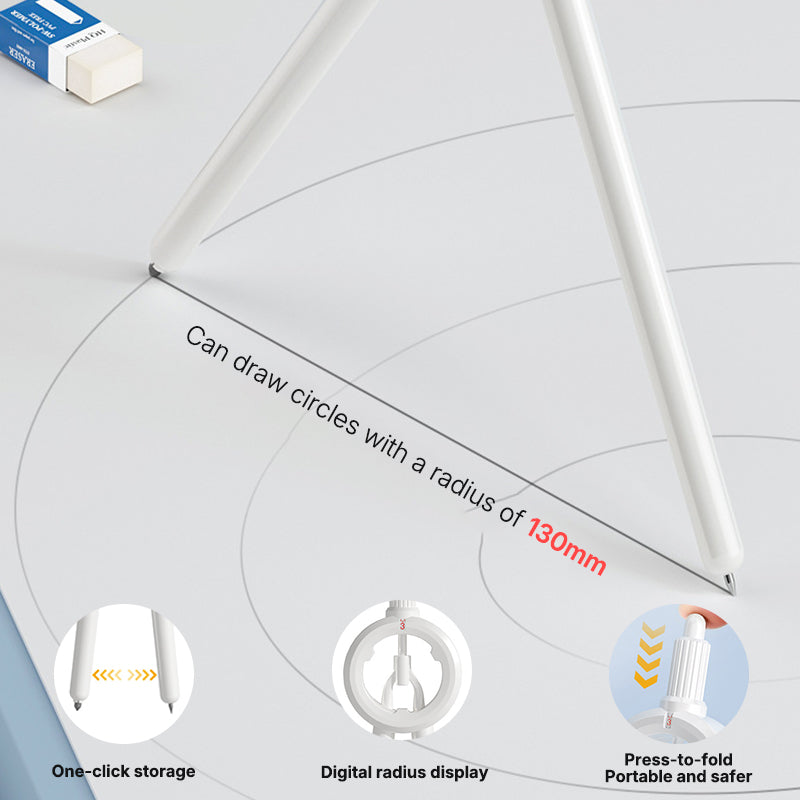 Upgrade your drawing experience with the Digital Display Press Compass. Designed for students and professionals, this innovative tool features a built-in radius display, one-click storage, and a non-detachable design for smooth, accurate circles every time – perfect for exams, homework, and technical drawing.