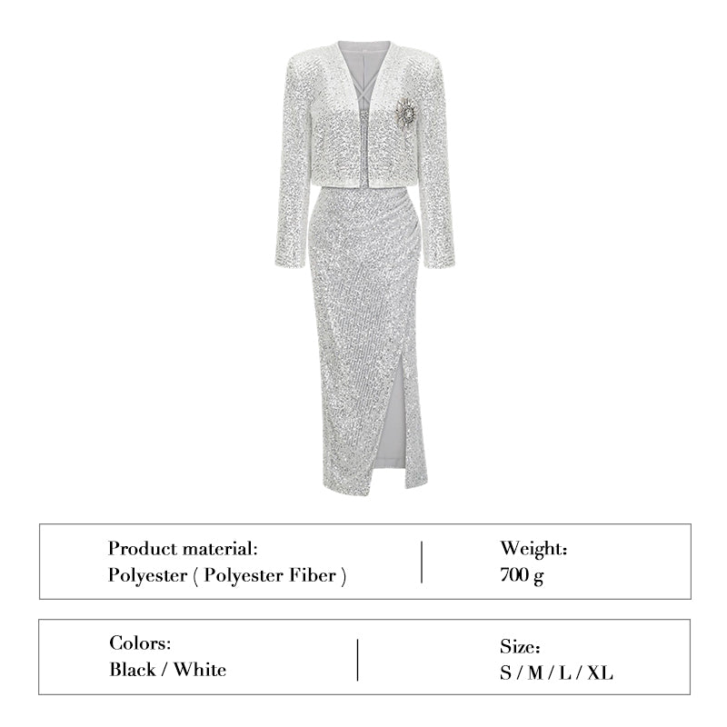 • Premium Two-Piece Set: Tailored Blazer + Sequin Slip Dress