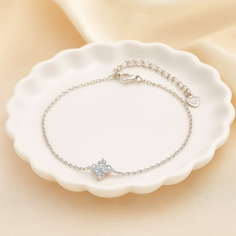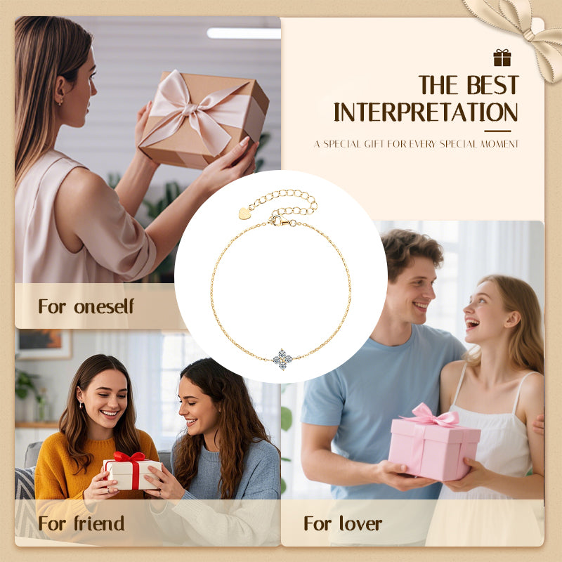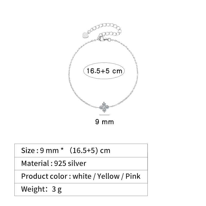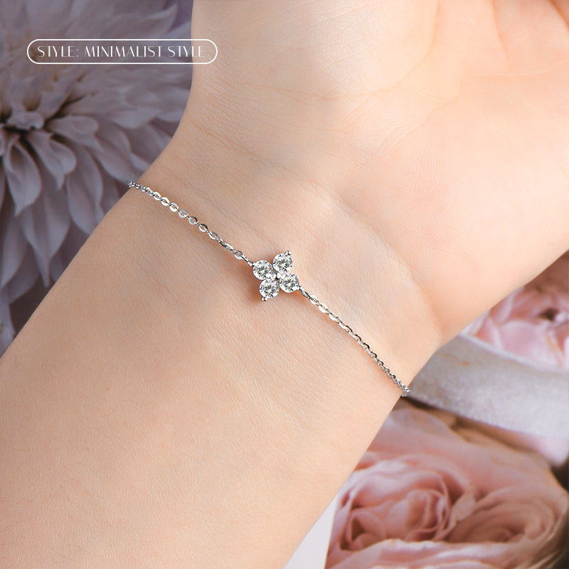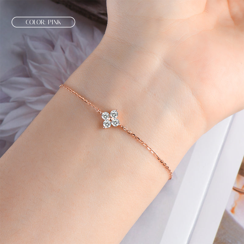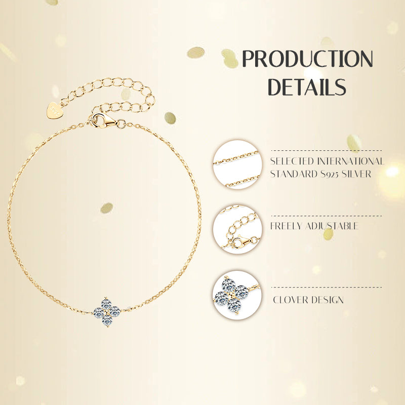 Embrace timeless elegance with our Four-Leaf Clover Silver Bracelet, featuring genuine S925 sterling silver and brilliant moissanite stones. This adjustable bracelet combines symbolic four-leaf clover design with modern craftsmanship, creating a piece that brings both style and meaning to your jewelry collection. Perfect for stacking or wearing alone, it makes an ideal gift for special moments.