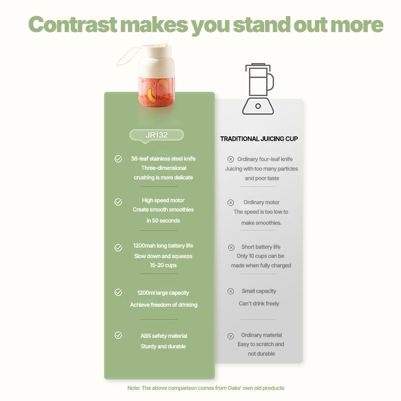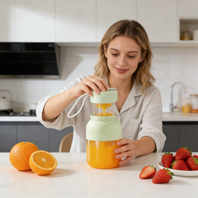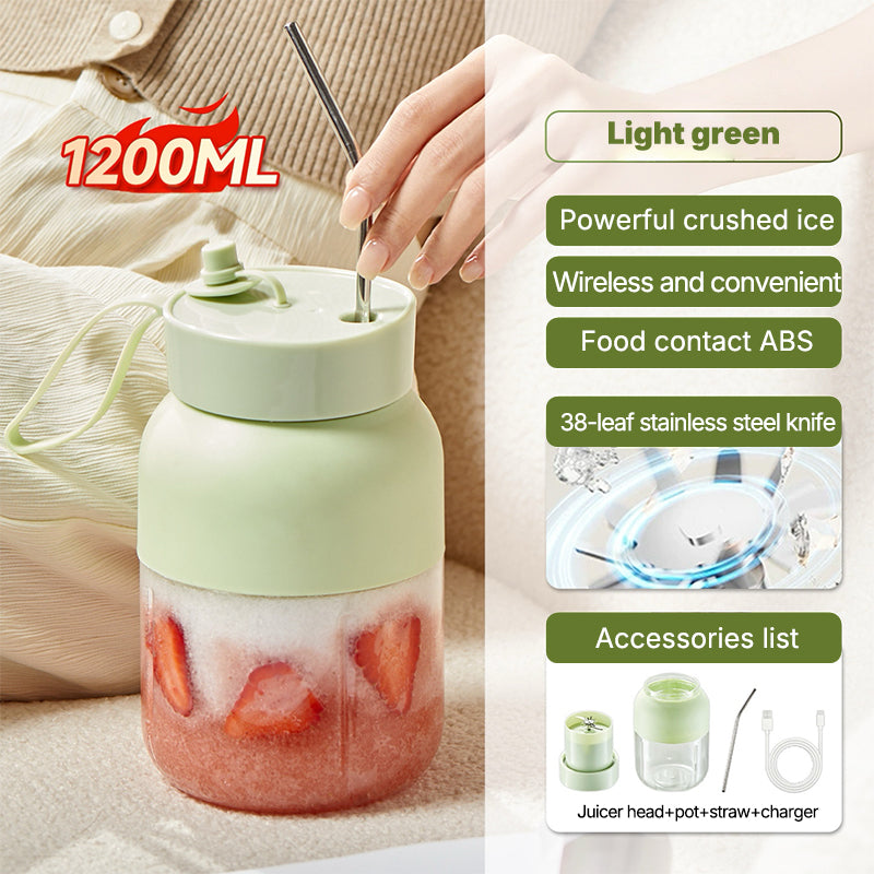 Experience the freedom of fresh juices anytime, anywhere. The AUX Portable Juicer combines a powerful 70W motor, 38-blade stainless steel cutter, and a large 1200ml capacity in a sleek, wireless design—perfect for home, travel, or on-the-go blending.