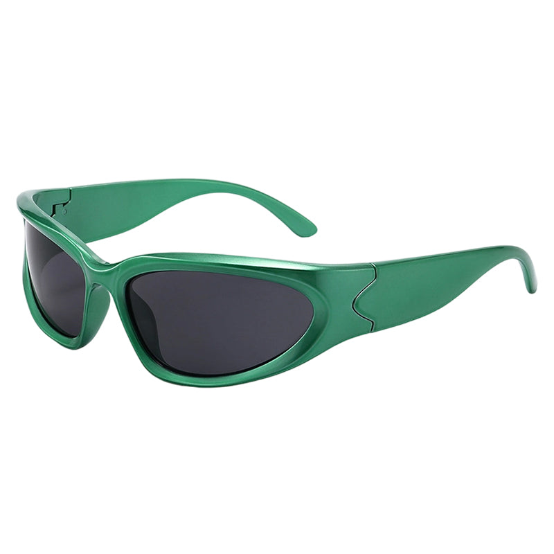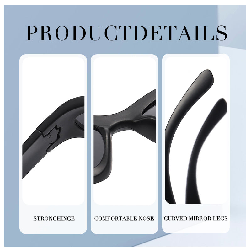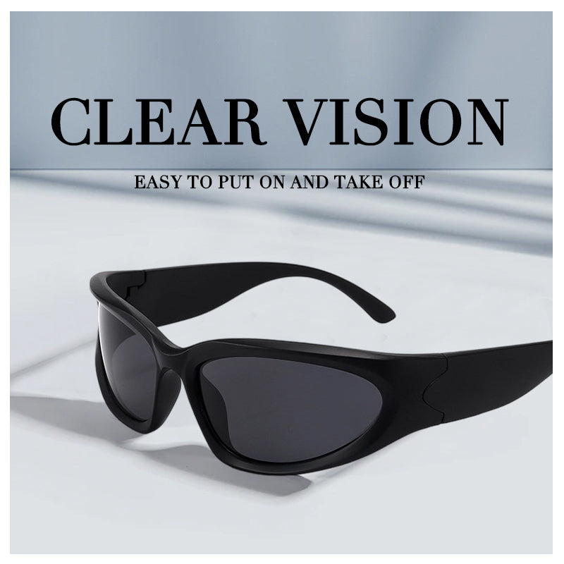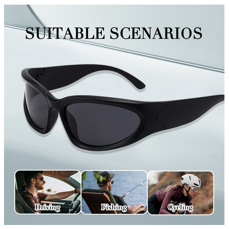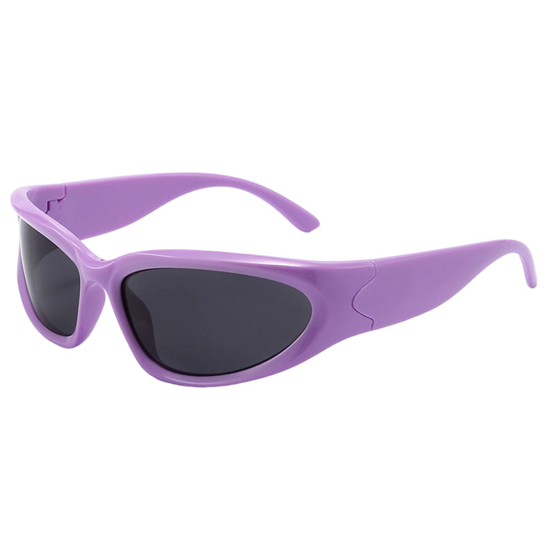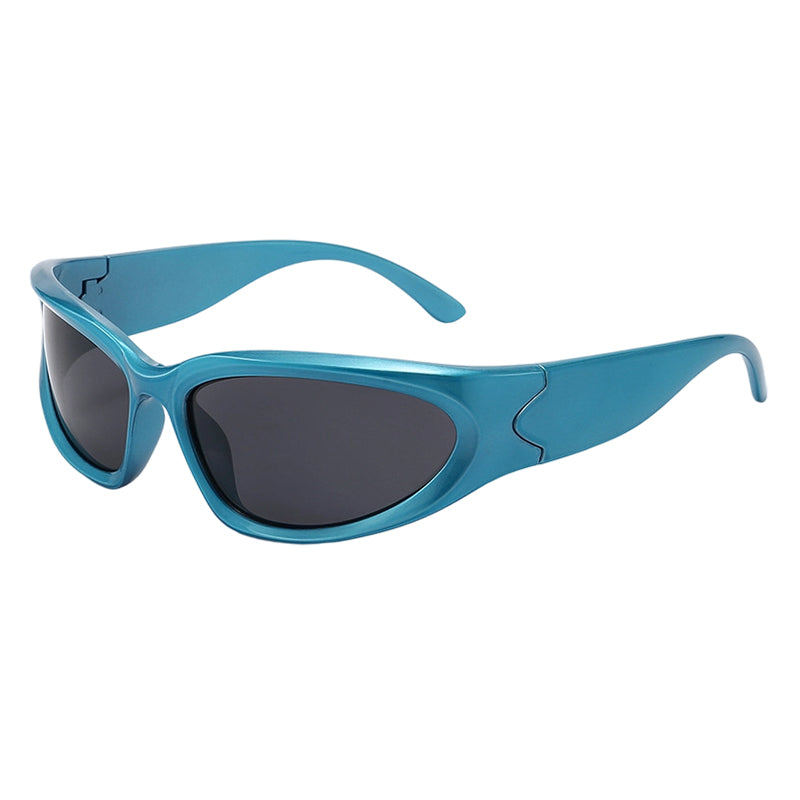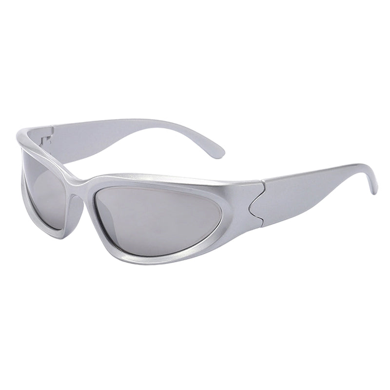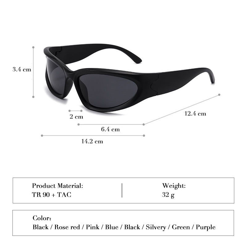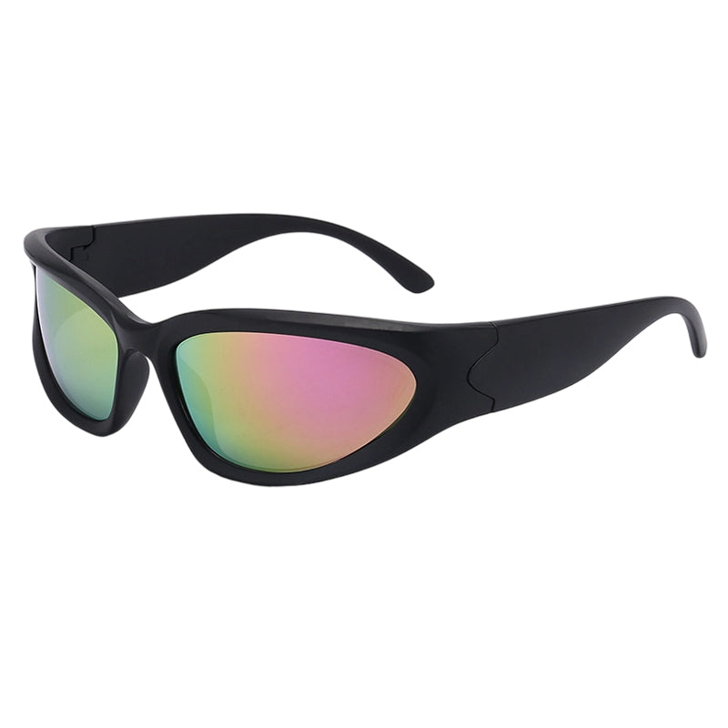 Y2K-inspired sunglasses featuring full PC construction and futuristic aesthetic. Designed for daily sun protection and fashion occasions with multiple color and lens combinations.