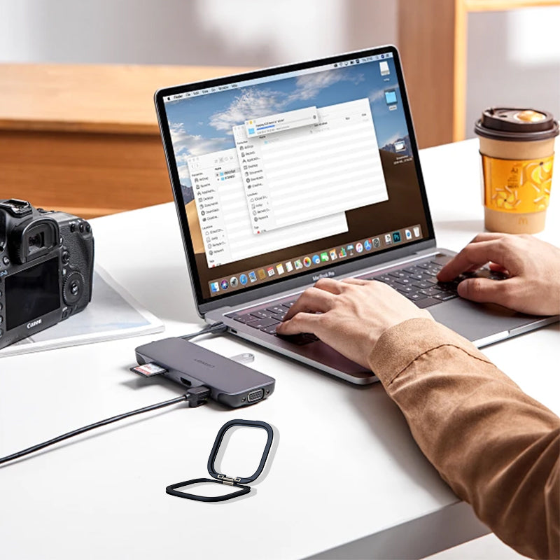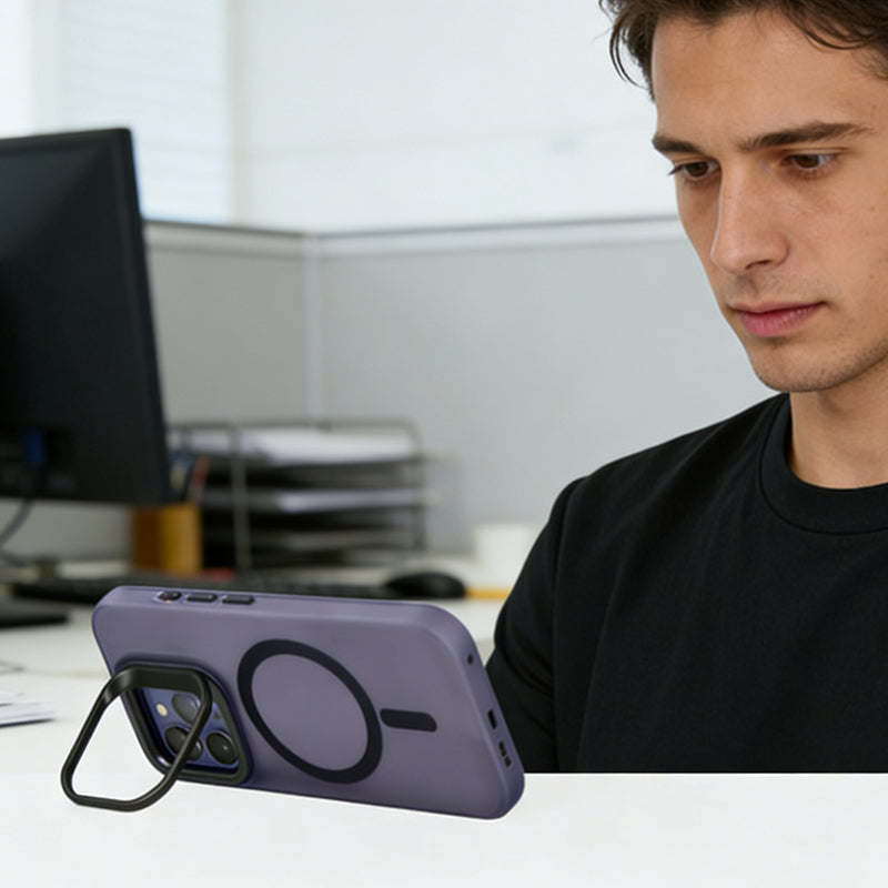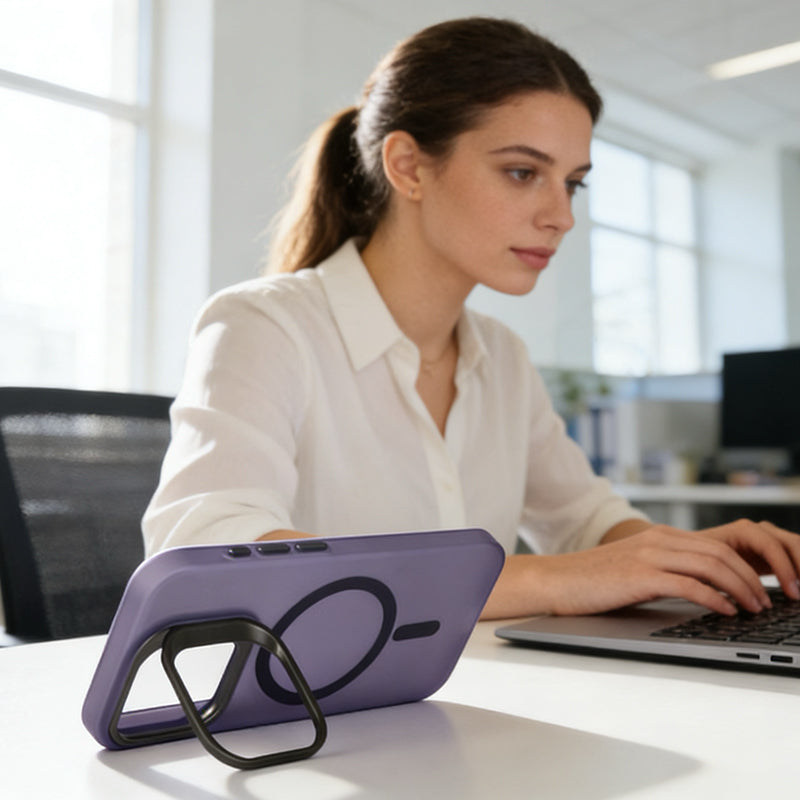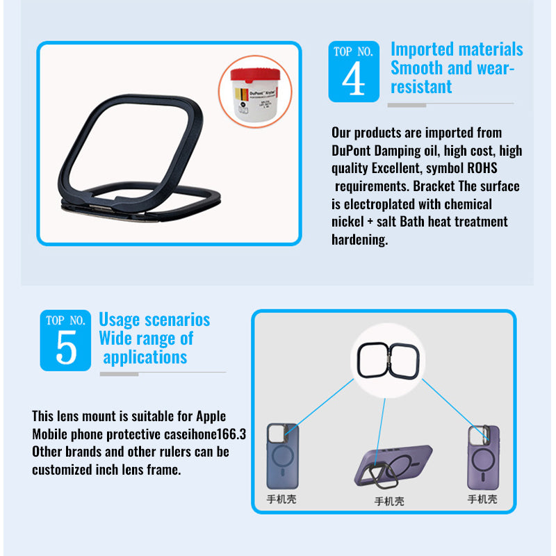 Protect your phone's camera and enjoy hands-free viewing with this ultra-thin aluminum lens stand. Designed to attach seamlessly to phone cases, it provides 120° adjustable angles and keeps your lens elevated off surfaces.