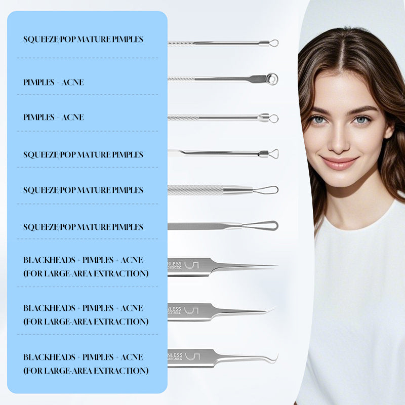 Achieve salon-quality skincare results at home with our Professional Acne Needle Set. Crafted from surgical-grade stainless steel, this comprehensive kit features ultra-fine tips and specialized tools for effective blackhead, acne, and pimple extraction. The ergonomic anti-slip design ensures precision and safety for your skincare routine.