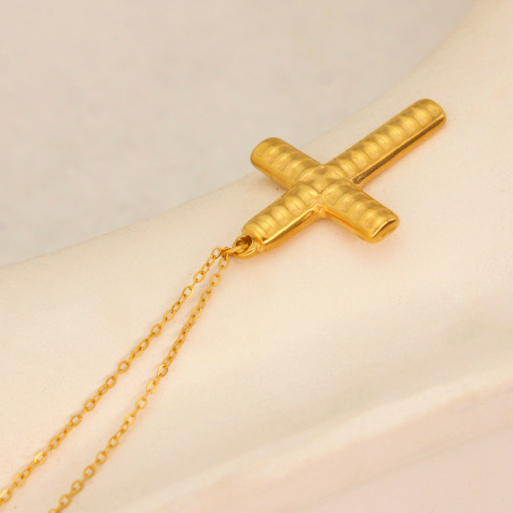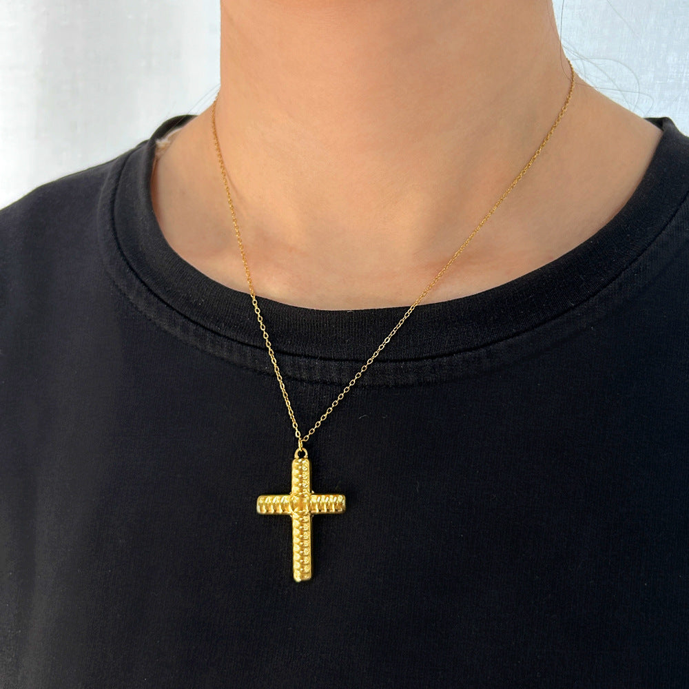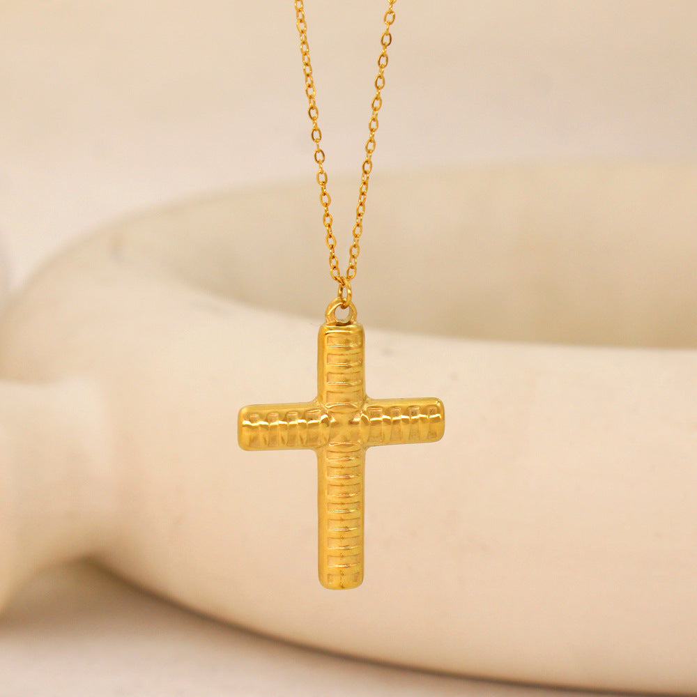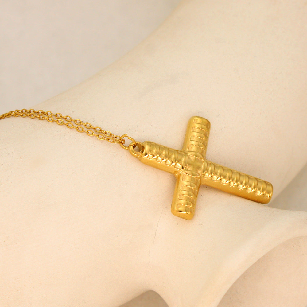 Embrace urban fashion with our Stainless Steel Cross Necklace, featuring a minimalist cross design with hip hop aesthetic. Crafted from premium stainless steel with 18K gold plating, this versatile piece combines edgy style with everyday elegance. Perfect for couples, fashion enthusiasts, and those who appreciate contemporary jewelry with a streetwear vibe.