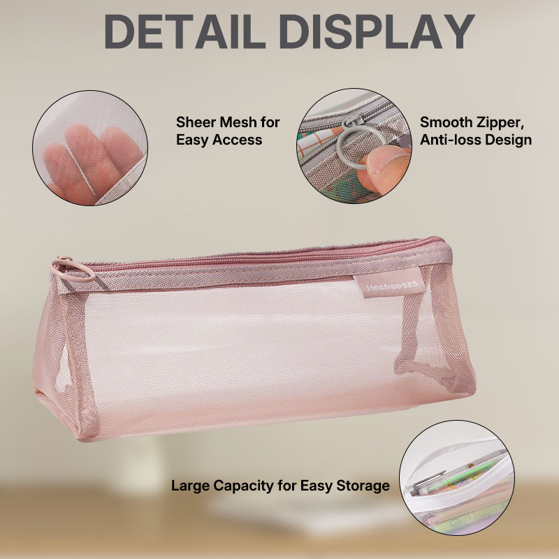 Upgrade your stationery organization with our innovative Triangular Mesh Pencil Case. Featuring a unique geometric design and transparent mesh material, this spacious organizer combines stylish aesthetics with practical functionality. Perfect for students, professionals, and anyone who values both form and function in their daily accessories.