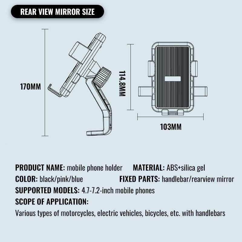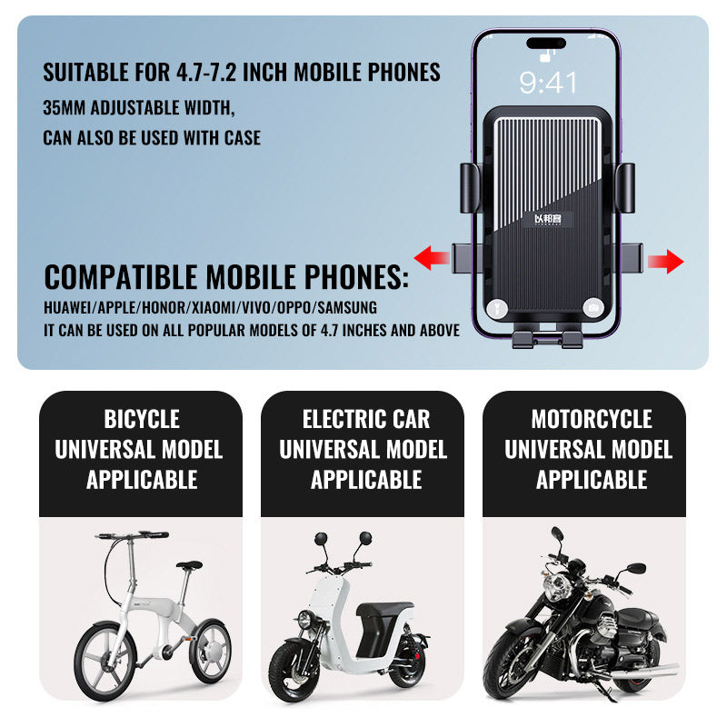 Keep your phone secure and visible on every ride with the Universal Handlebar Phone Mount. Designed for e-bikes, motorcycles, and bicycles, this durable ABS + silicone holder offers adjustable width, sunshade protection, and universal compatibility for most 4.7–7.2-inch smartphones.