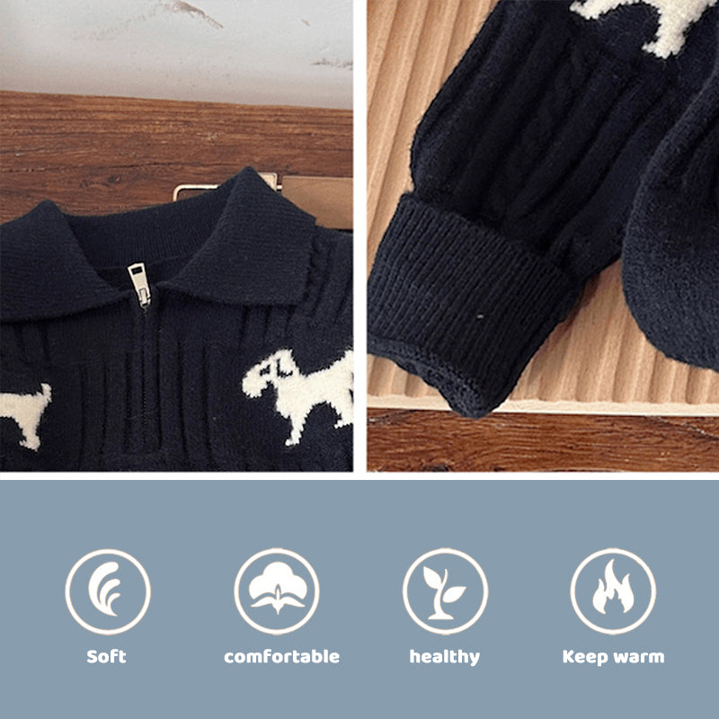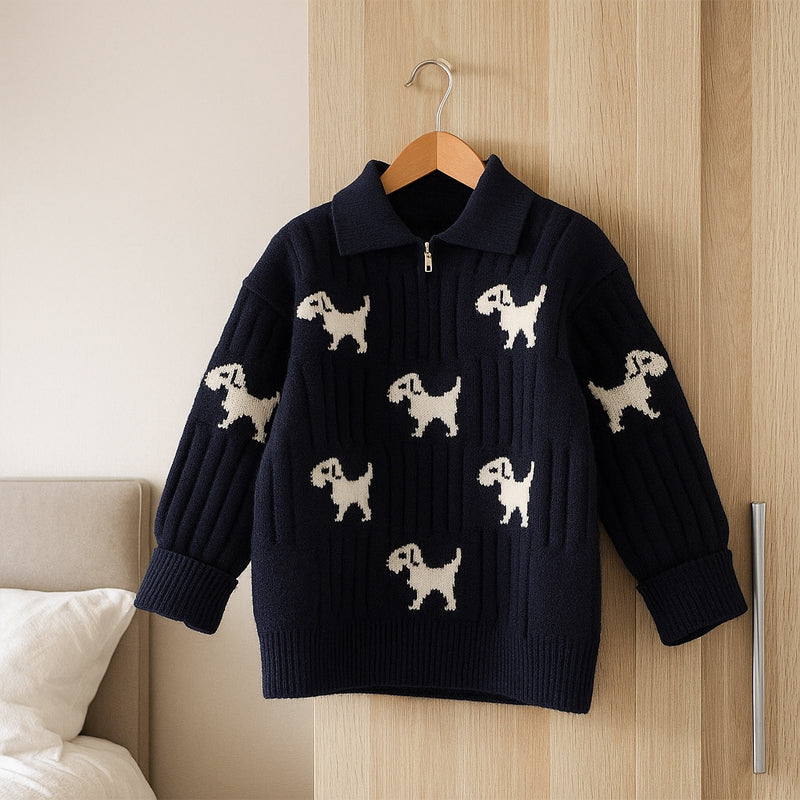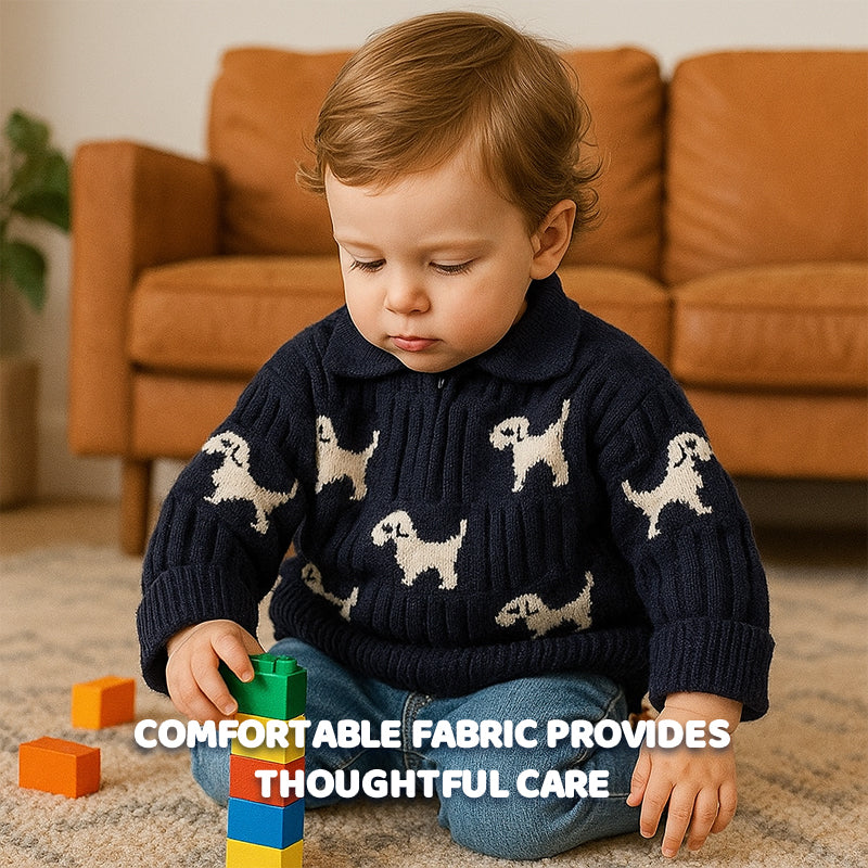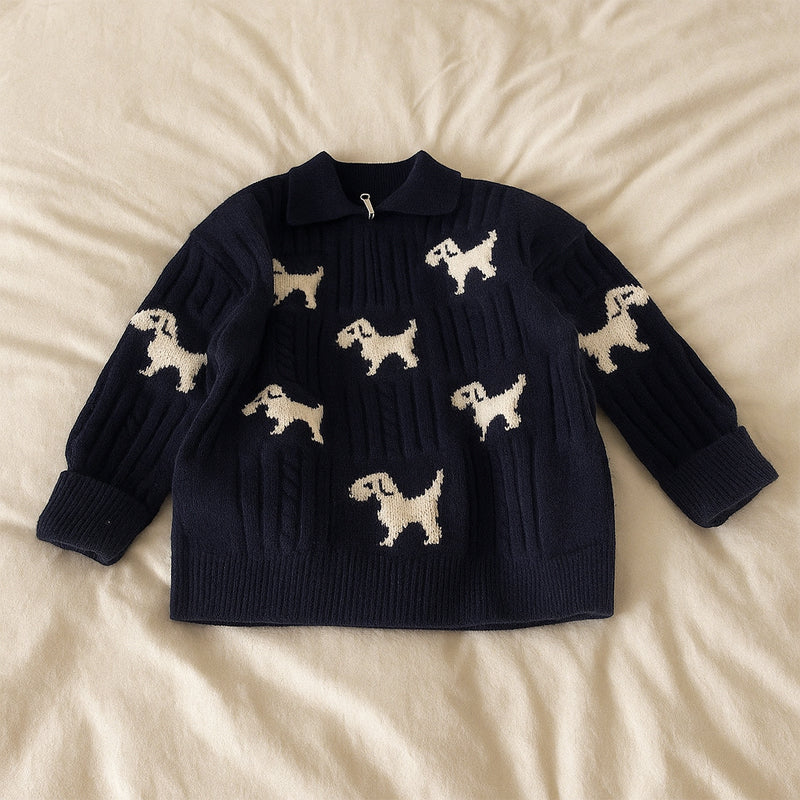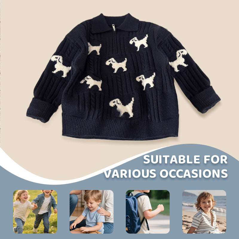 Keep your little one warm and stylish with our adorable Boy's Puppy Knitted Sweater. Featuring a charming puppy pattern and soft acrylic fabric, this pullover sweater combines comfort with cute design. Perfect for autumn days, school activities, and family outings, it's the ideal choice for your child's seasonal wardrobe.