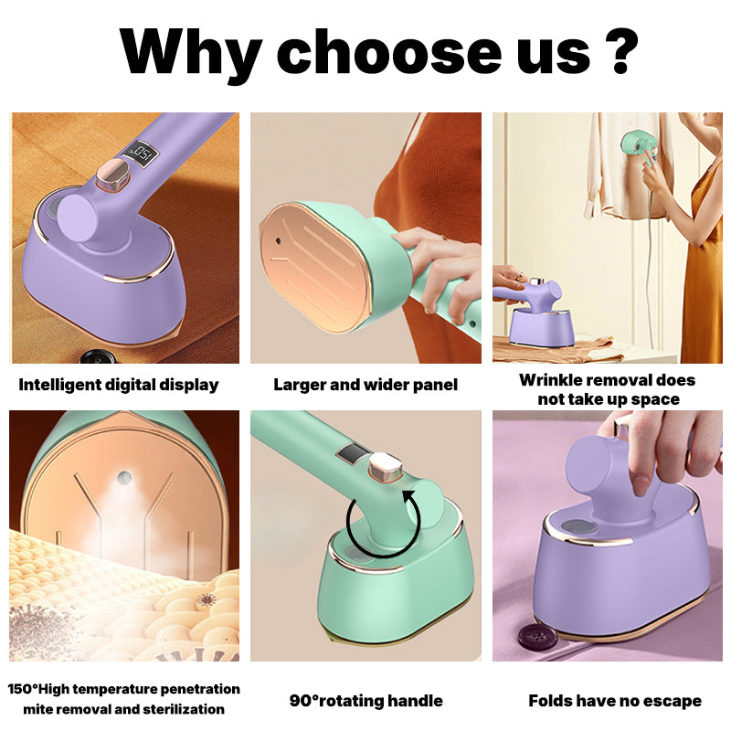 The Digital Display Garment Iron combines smart technology with efficient wrinkle removal. Featuring an enlarged purple-gold panel, 150° high-temperature penetration, and 90° rotating handle, it delivers professional ironing for the whole family.