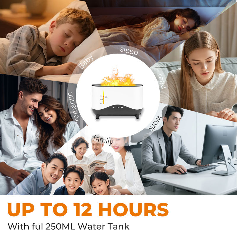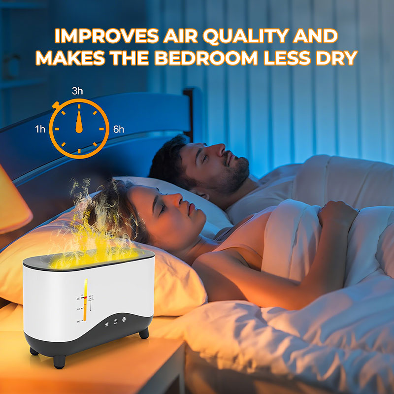 Enhance your space with our 5-Color Flame Light Mist Humidifier, a versatile device that combines soothing mood lighting with effective humidification. Designed to create a serene and romantic atmosphere, it helps improve air quality while adding a touch of elegance to any room—whether it's your bedroom, nursery, or living area. Easy to operate and built for daily use, this humidifier offers up to 12 hours of continuous mist and customizable light settings to match your mood.