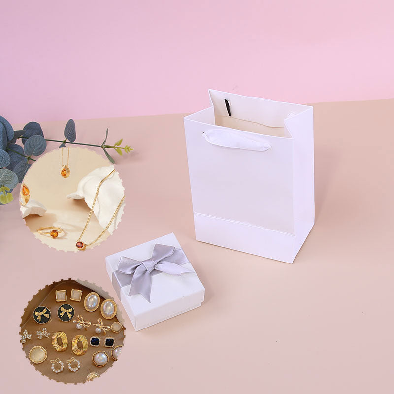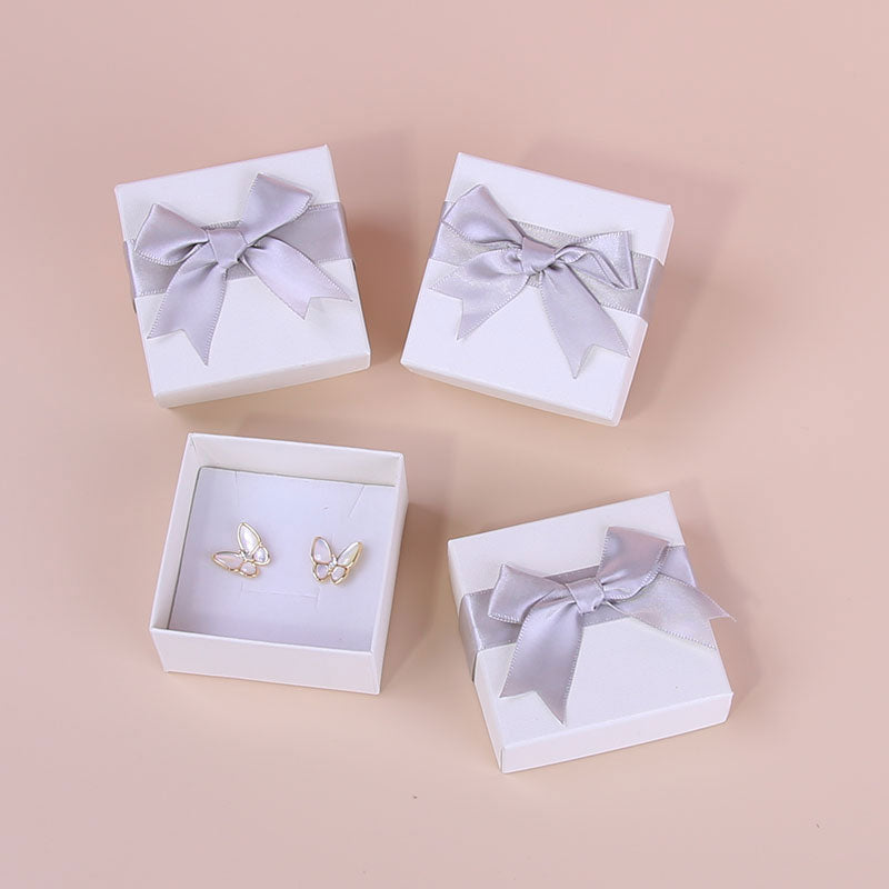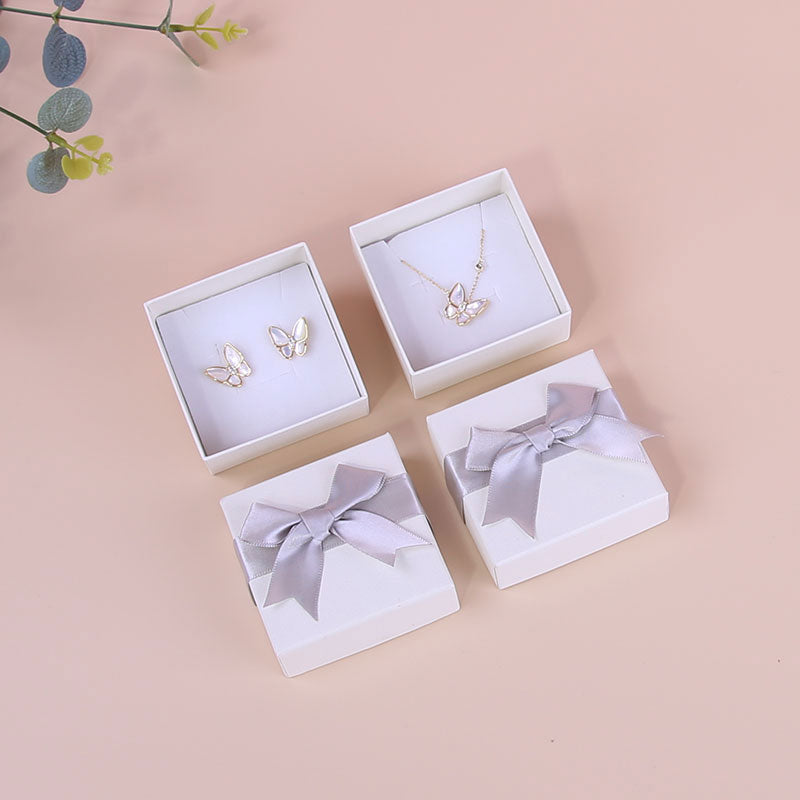 Present your precious jewelry in style with our elegant Gray Bow Jewelry Gift Box. Featuring a sophisticated heaven-and-earth cover design and convenient carrying handle, this packaging solution combines functionality with aesthetic appeal. Perfect for storing and gifting earrings, rings, necklaces, and other small treasures, it adds a touch of luxury to any jewelry presentation.