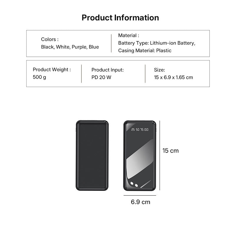 Never run out of power with our high-capacity 20000mAh Power Bank featuring 20W fast charging technology. This powerful portable charger provides extended battery life for all your devices, making it perfect for travel, outdoor adventures, and daily use. With universal compatibility and logo customization options, it's the reliable power solution you've been searching for.