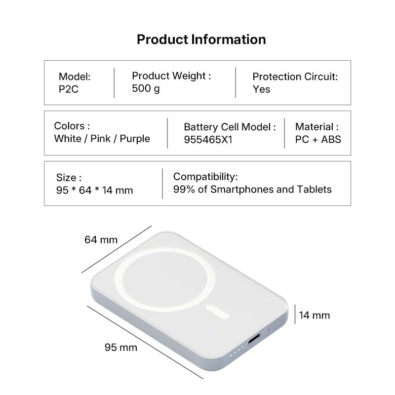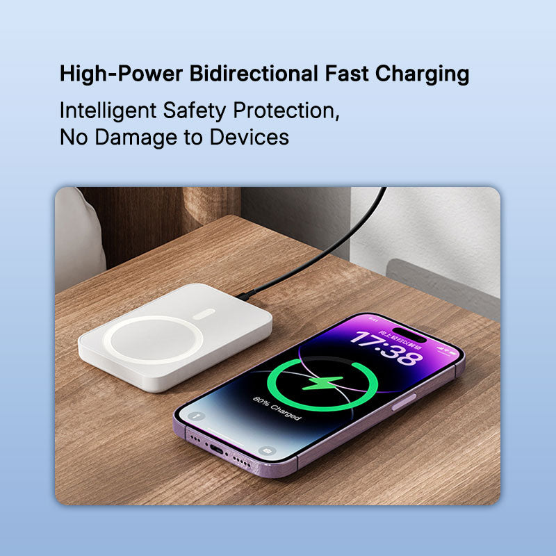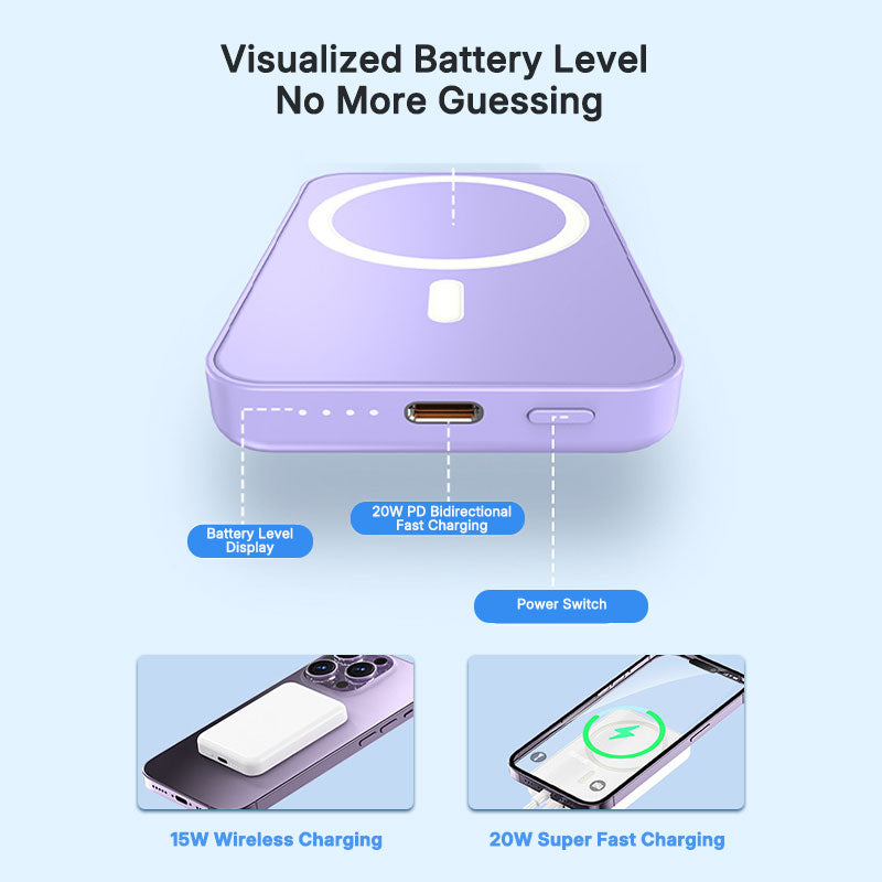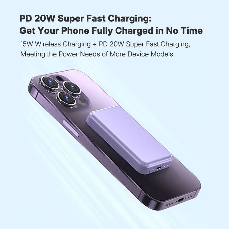 Experience the future of mobile charging with our Magnetic Wireless Power Bank. This ultra-thin 5000mAh power bank features MagSafe magnetic attachment, 20W bidirectional fast charging, and 15W wireless charging capabilities. With its sleek design and customizable logo option, it's the perfect power solution for travelers and professionals alike.