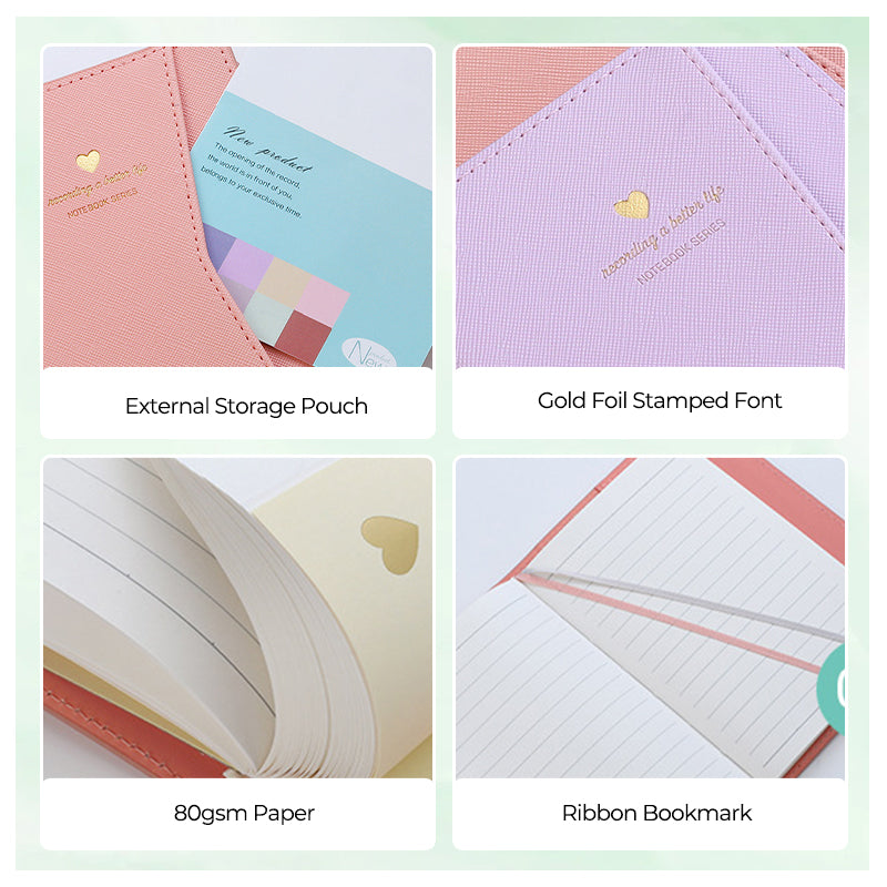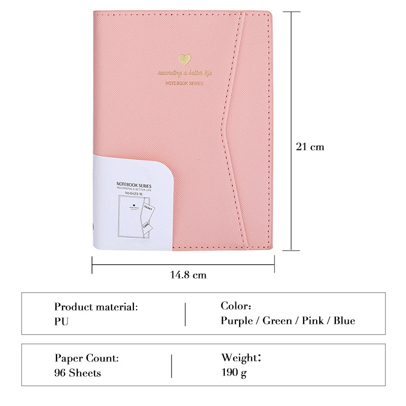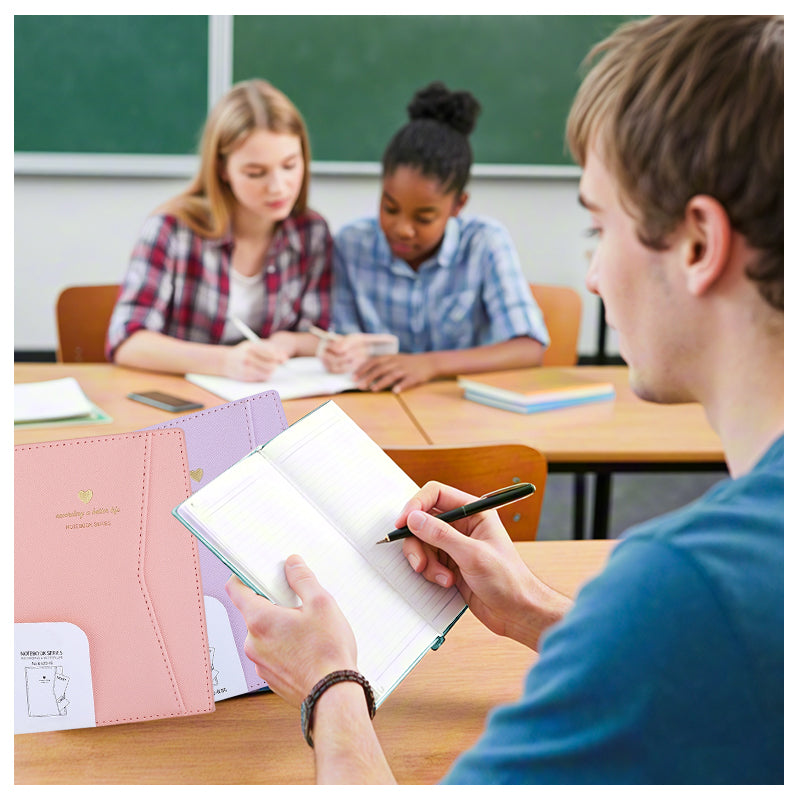 Standard notebook with premium PU cover, designed for daily writing and note-taking. Features a compact size and refillable paper core with multiple color options.