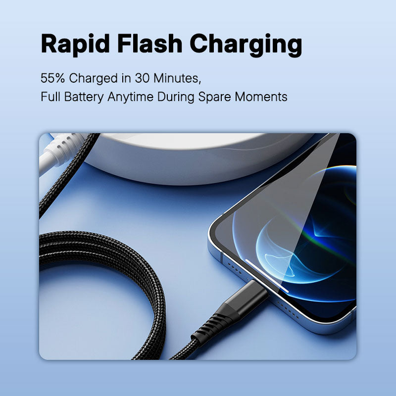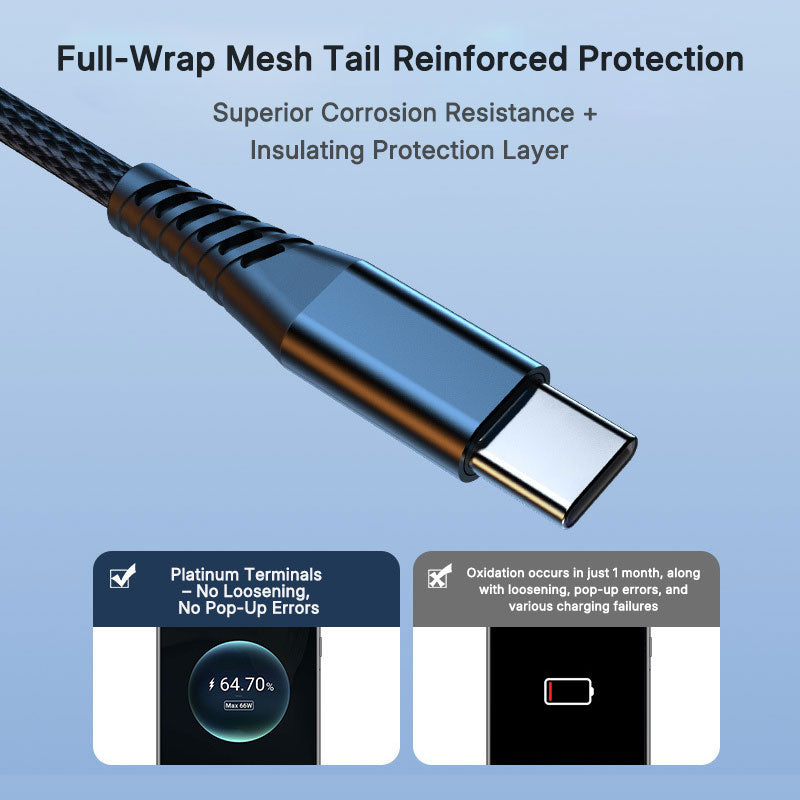 Meet your ultimate charging solution – the Type-C Nylon Braided Fast-Charging Cable. Designed for both Apple and Android devices, it combines 66W rapid charging, reinforced connectors, and simultaneous data transfer in one durable, tangle-free cable.
