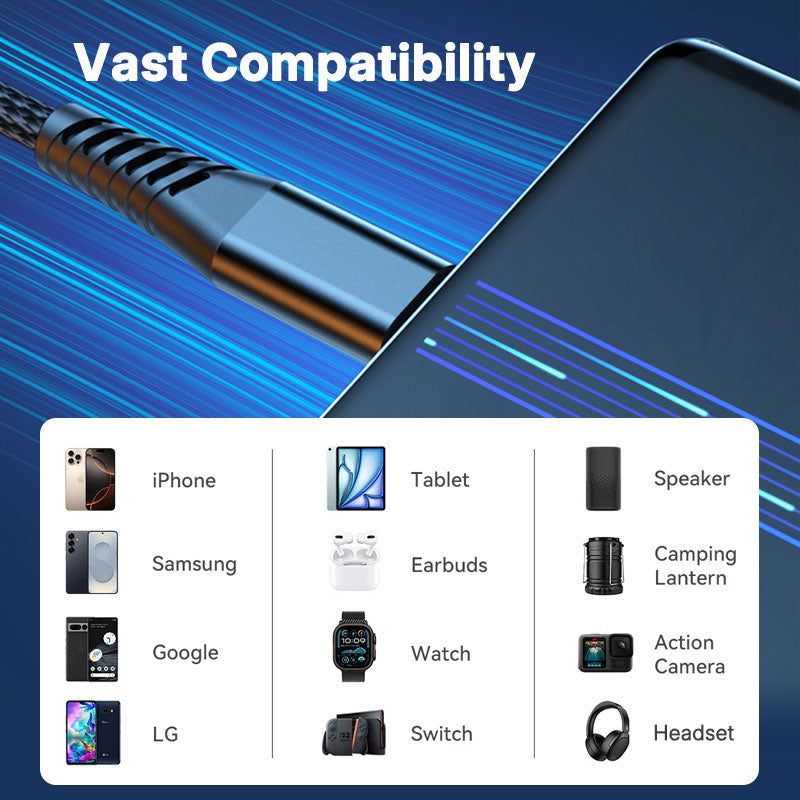 Nylon braided jacket + aluminum alloy shell – durable and tangle-free