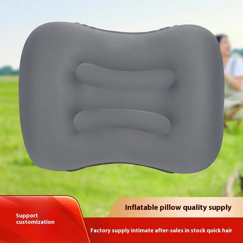 Inflatable travel pillow designed for neck support during travel and rest. Features compact inflation and deflation functionality.