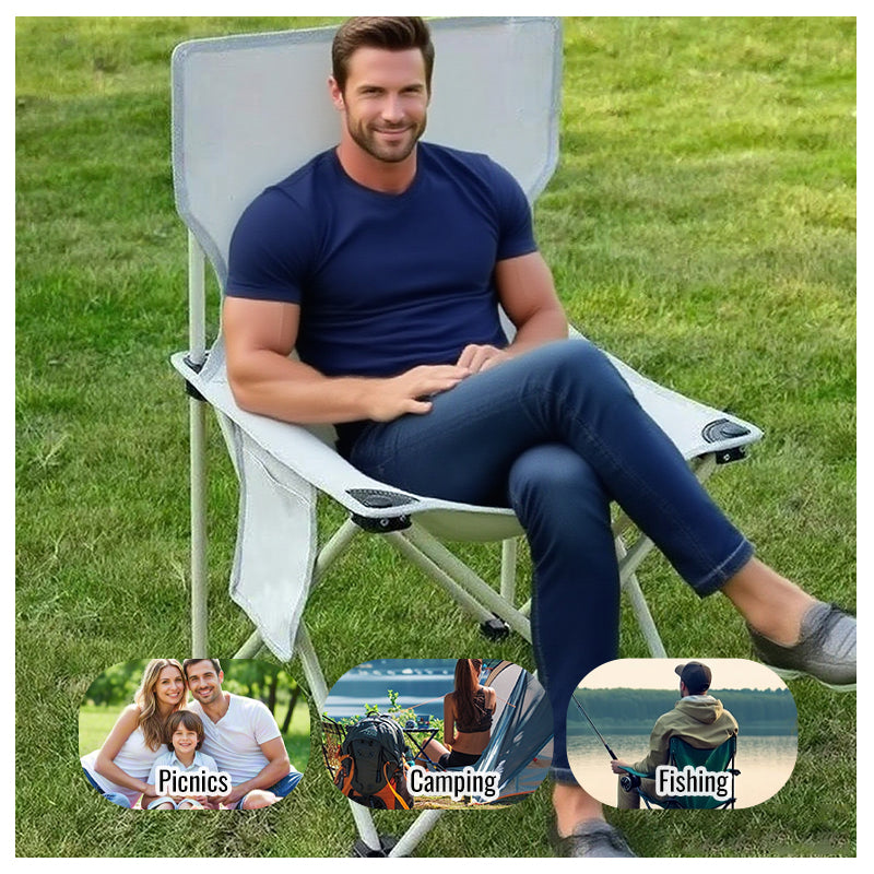 Large folding chair providing comfortable seating for outdoor use. Features enhanced dimensions and robust construction for extended outdoor relaxation.