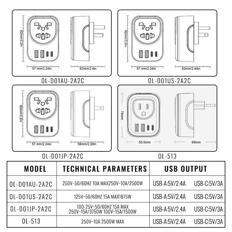 • All-in-one plug compatibility (EU/US/UK/AU/JP)