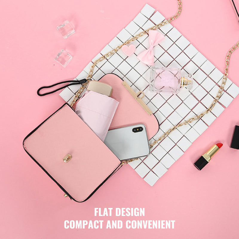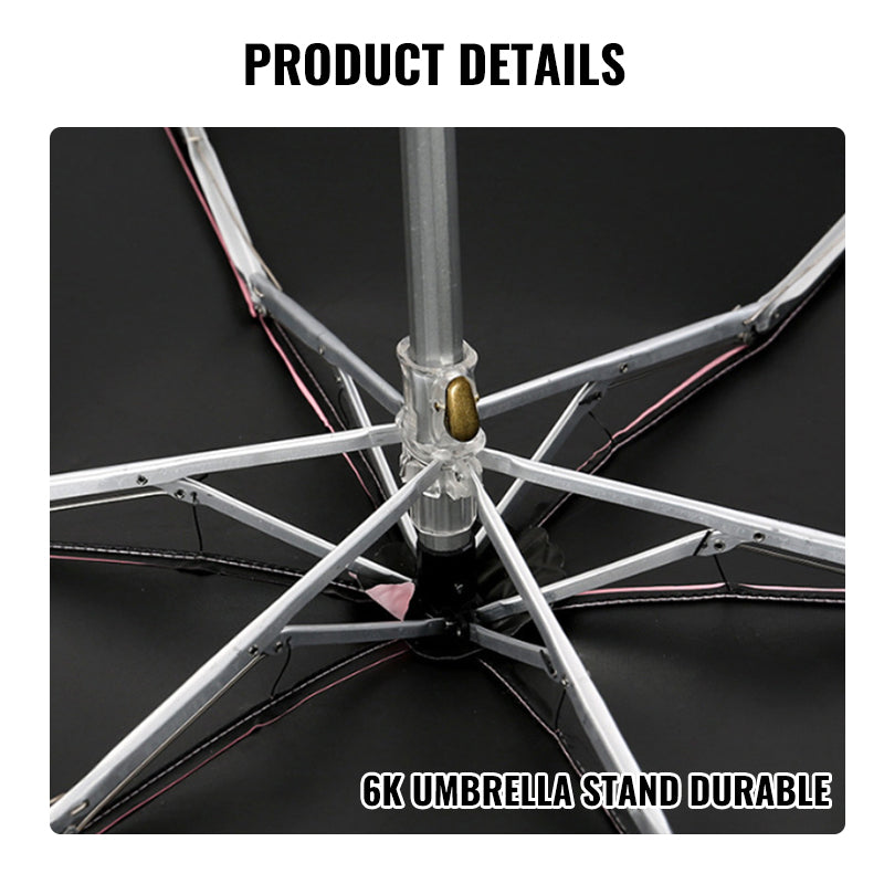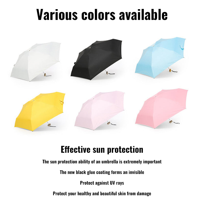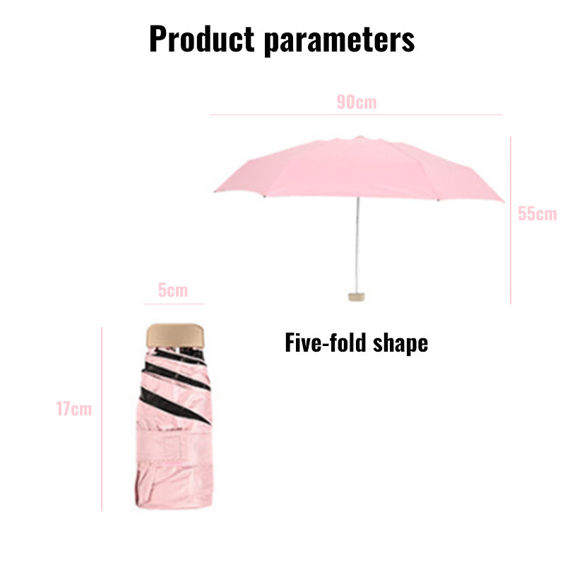Discover ultimate portability with our 5-fold mini umbrella – your perfect pocket-sized companion for sun and rain. With advanced black coating technology that blocks 99% of UV rays, this ultra-compact umbrella folds down to just 17cm, making it ideal for daily carry, travel, and custom branding opportunities.