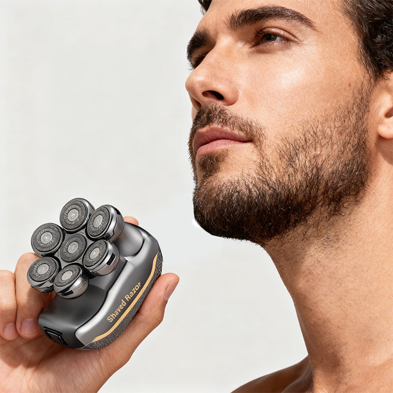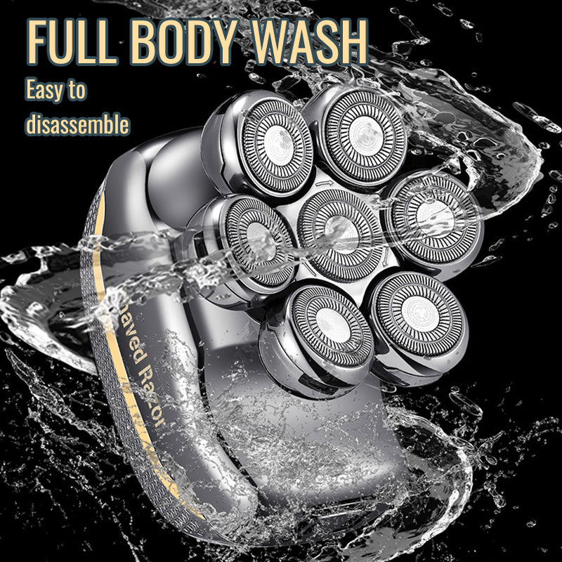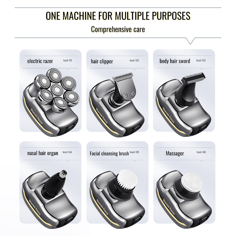 7 tools in 1: razor, clipper, nose/body hair trimmer, facial brush, massager