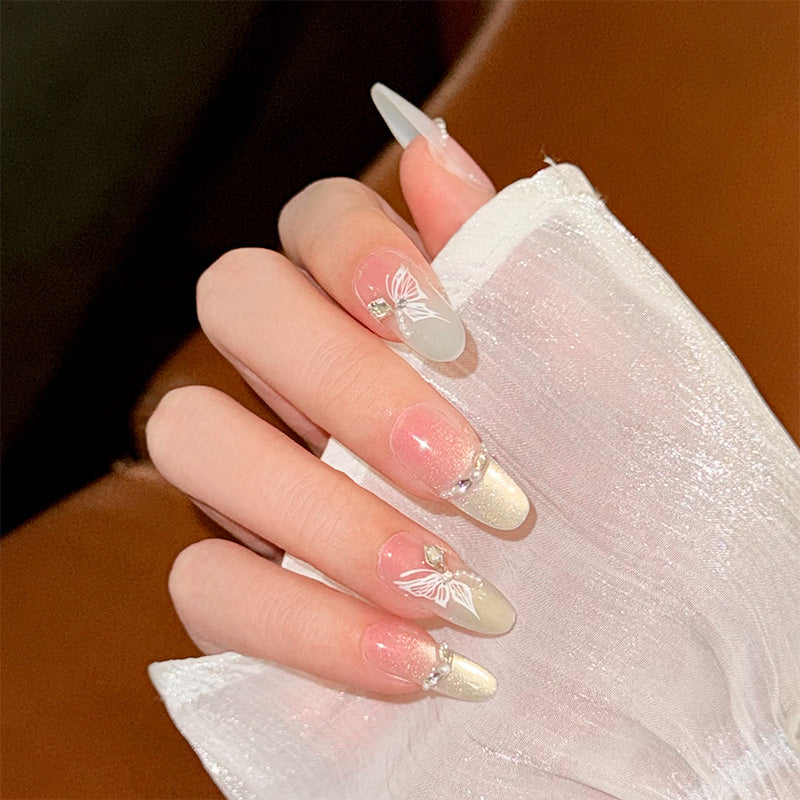 Elevate your style with our elegant Almond Cat Eye Press-On Nails. Designed in a flattering almond shape with a mesmerizing cat eye effect, these medium-length nails offer a salon-quality finish at home. The luminous design brightens your hands while the reusable construction ensures lasting beauty.