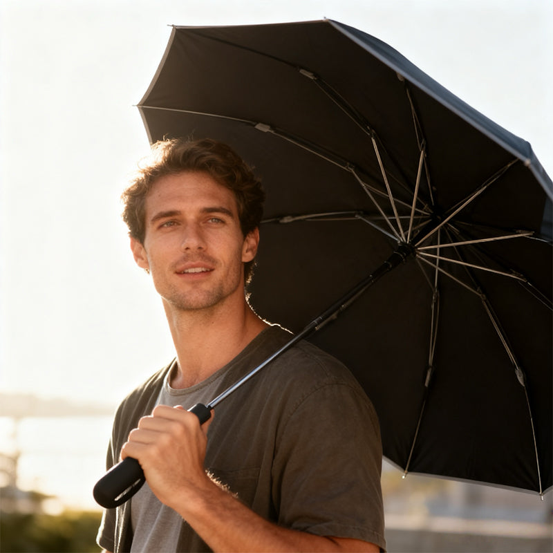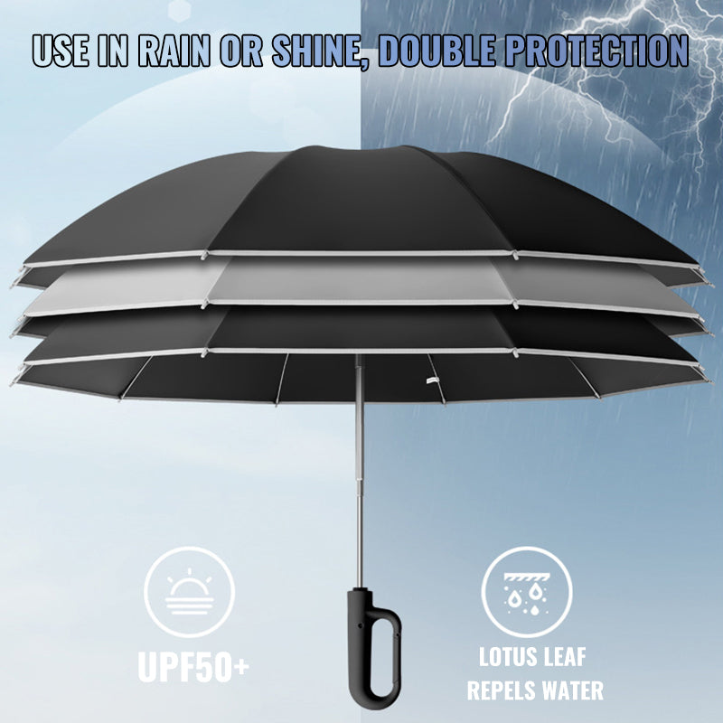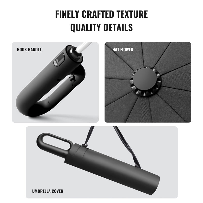 Meet your perfect portable protection – this automatic folding umbrella features a convenient hook design for easy carrying. With UPF50+ sun protection and lotus leaf water-repellent technology, it provides double defense for rain or shine. Ideal for daily commute, travel, or branded corporate gifts.
