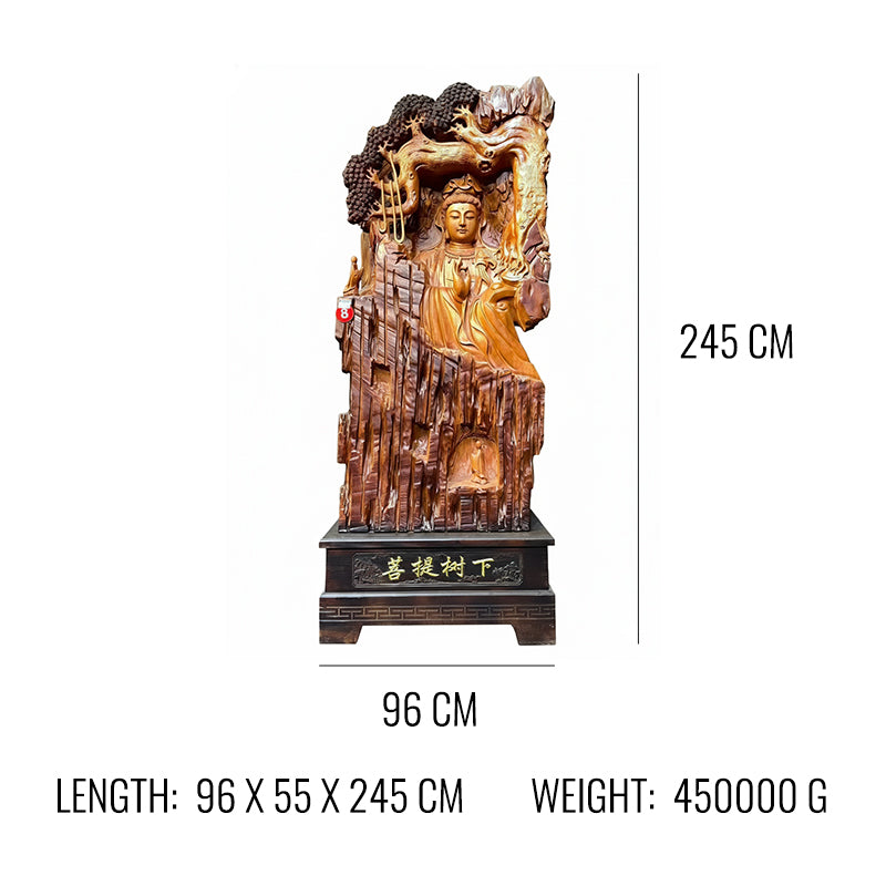 Experience divine serenity with this magnificent "Guanyin Under Bodhi Tree" wood carving. This masterful sculpture depicts the compassionate Bodhisattva in peaceful meditation beneath the sacred Bodhi tree, symbolizing enlightenment and spiritual wisdom. Handcrafted from precious wood, this piece brings profound spiritual presence and artistic excellence to any space.