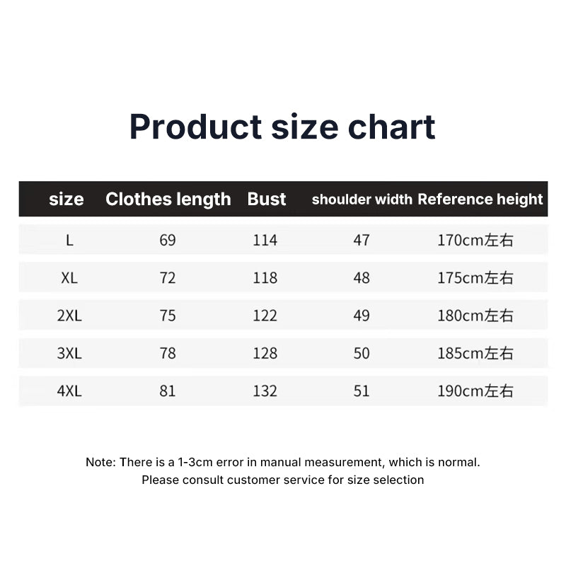 Sizes: L, XL, 2XL, 3XL, 4XL
