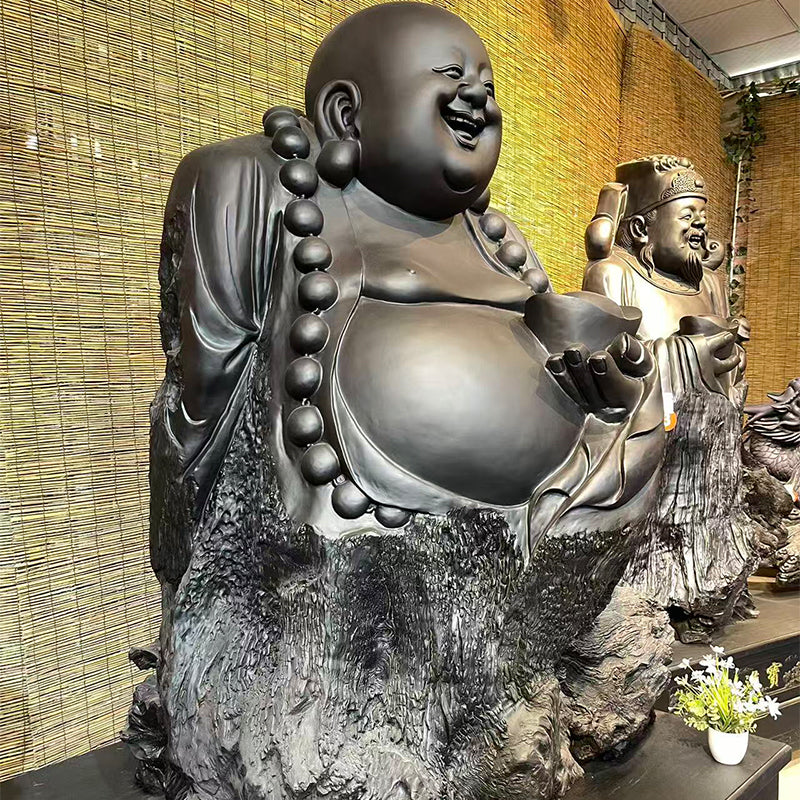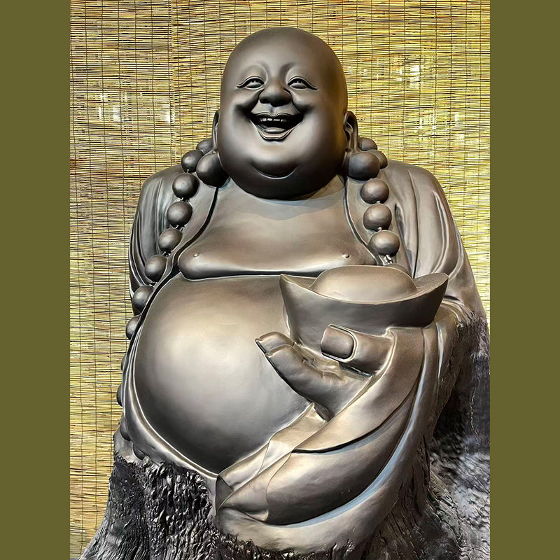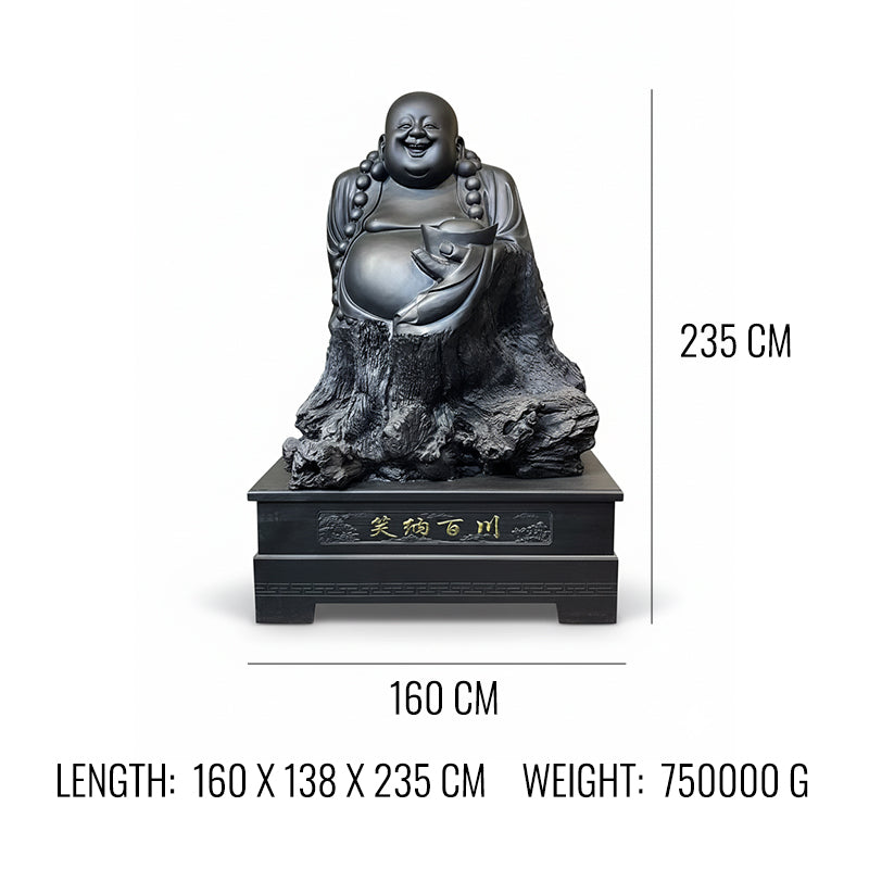 Embrace joy and abundance with this magnificent Maitreya Buddha wood carving. The laughing Buddha, symbolizing happiness, prosperity, and contentment, is expertly hand-carved from premium wood, bringing cultural significance and artistic excellence to any space.